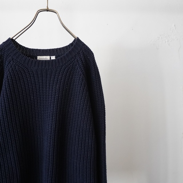 紺色のアクリルニット 丈夫な厚みのある生地感です。 ゆったりしたサイズなので、男女問わず着ていただけます◎ サイズ表記:L(ladies) 右袖の先にうっすらとダメージがあります。 写真にてご確認ください。 【MATERIAL】 acrylic 100% 【SIZE】 着丈 64cm 身幅 58cm 裄丈 91cm 着用モデル身長:160cm ※ サイズは平置き採寸になりますので若干の誤差が生じる場合がございます。予めご了承ください。 - 注意事項 - 当店ではused/vintageを扱っております。商品の経年変化による風合いについて、事前にご理解頂きご購入をお願い致します。 商品の軽微な汚れ、小穴、ほつれ等出来る限り掲載致しますが、稀に見落とす場合がございます。 また、現時点では確認できない古着独特の経年による風合い、ダメージが出てくる可能性もございます。 ご了承くださいませ。 ご覧頂く環境により、商品画像のカラーと実際の色味が異なる場合がございます。予めご了承ください。 決算日より、翌3日以内の発送を予定しております。 ご購入後のキャンセル、返品、交換は致しかねます。予めご理解の上ご購入ください。 商品についてご不明な点がございましたら、お気軽にお問い合わせくださいませ。