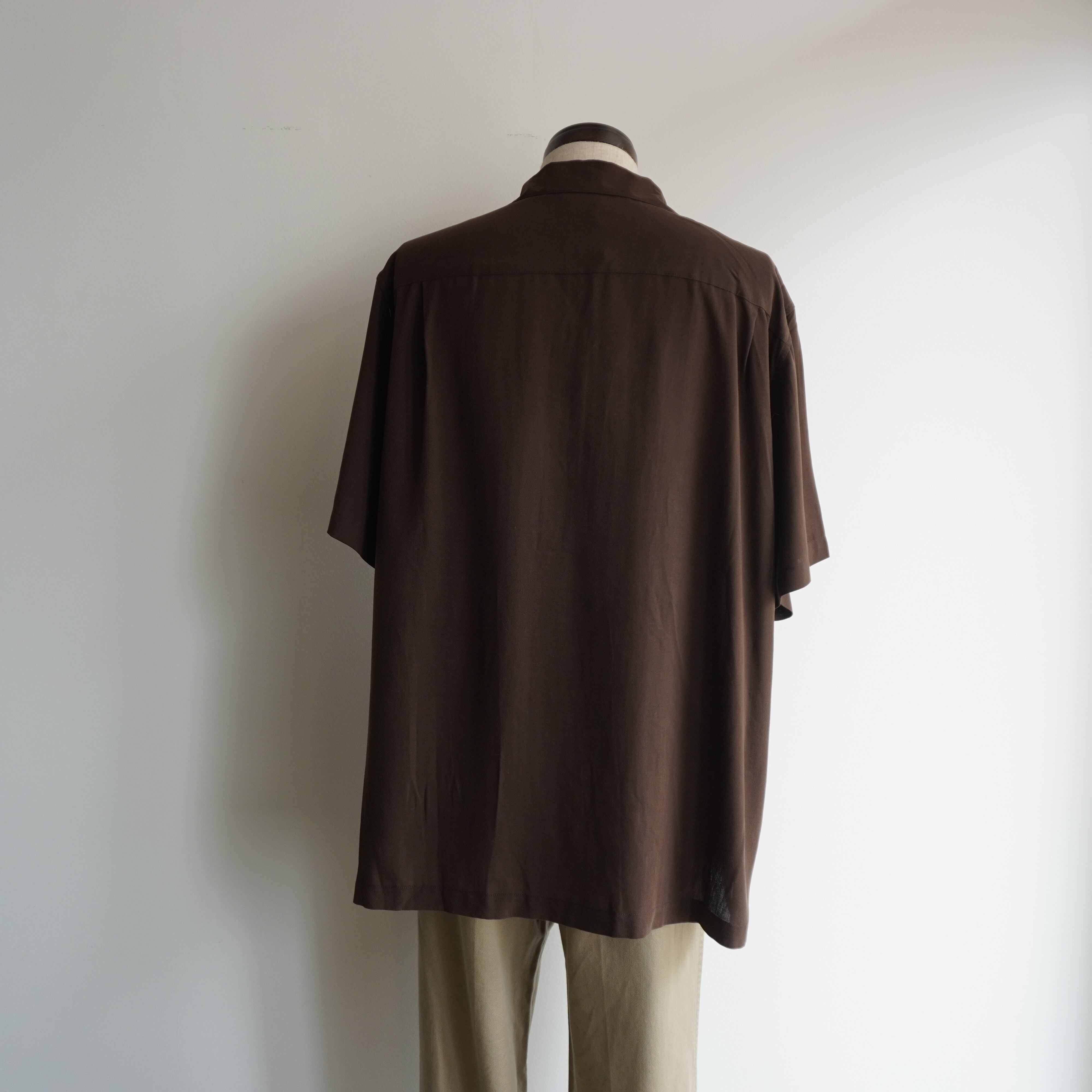 ボックスシルエットのオープンカラーに、落ち着いた配色が品のある1着◎