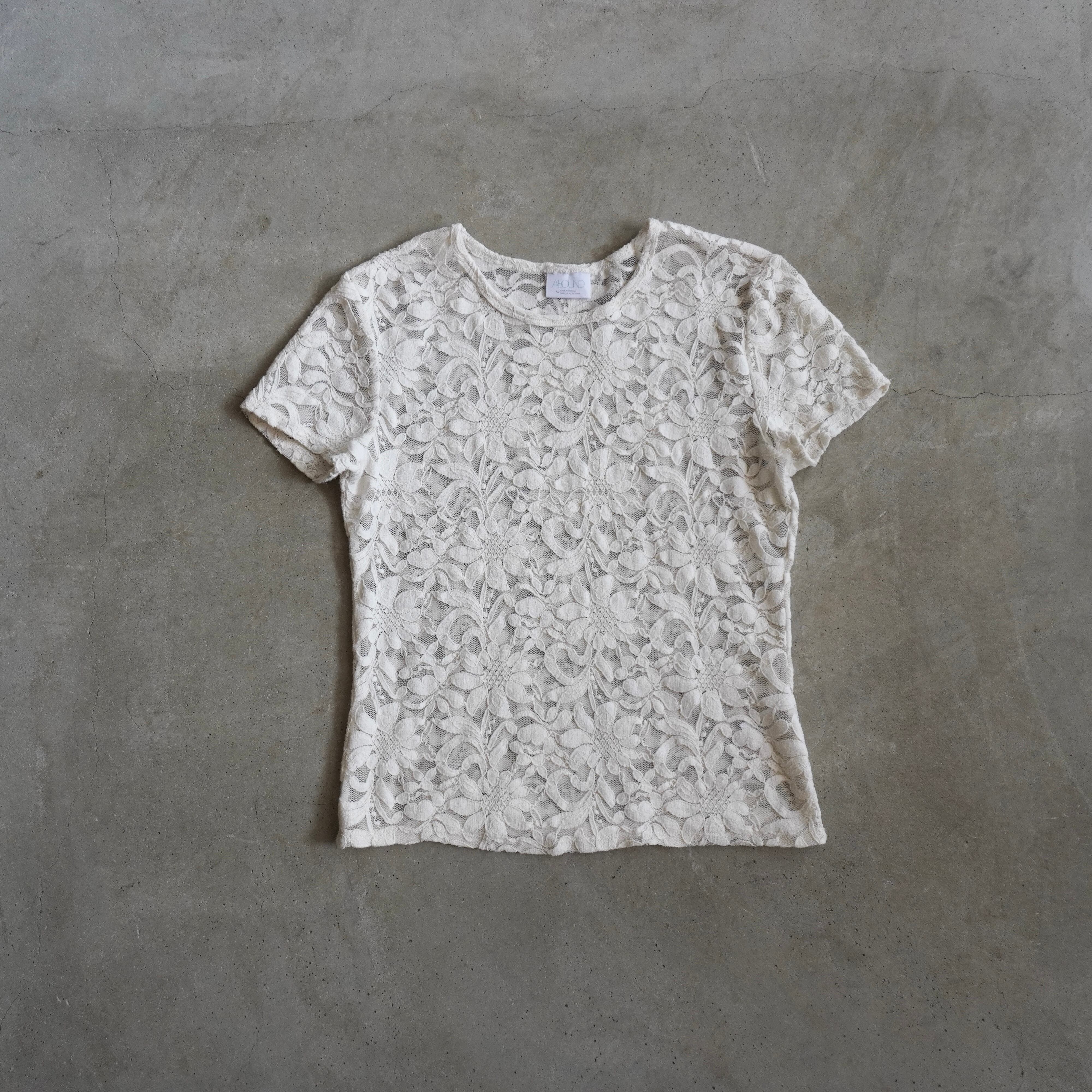 クリームカラーのレースtシャツ