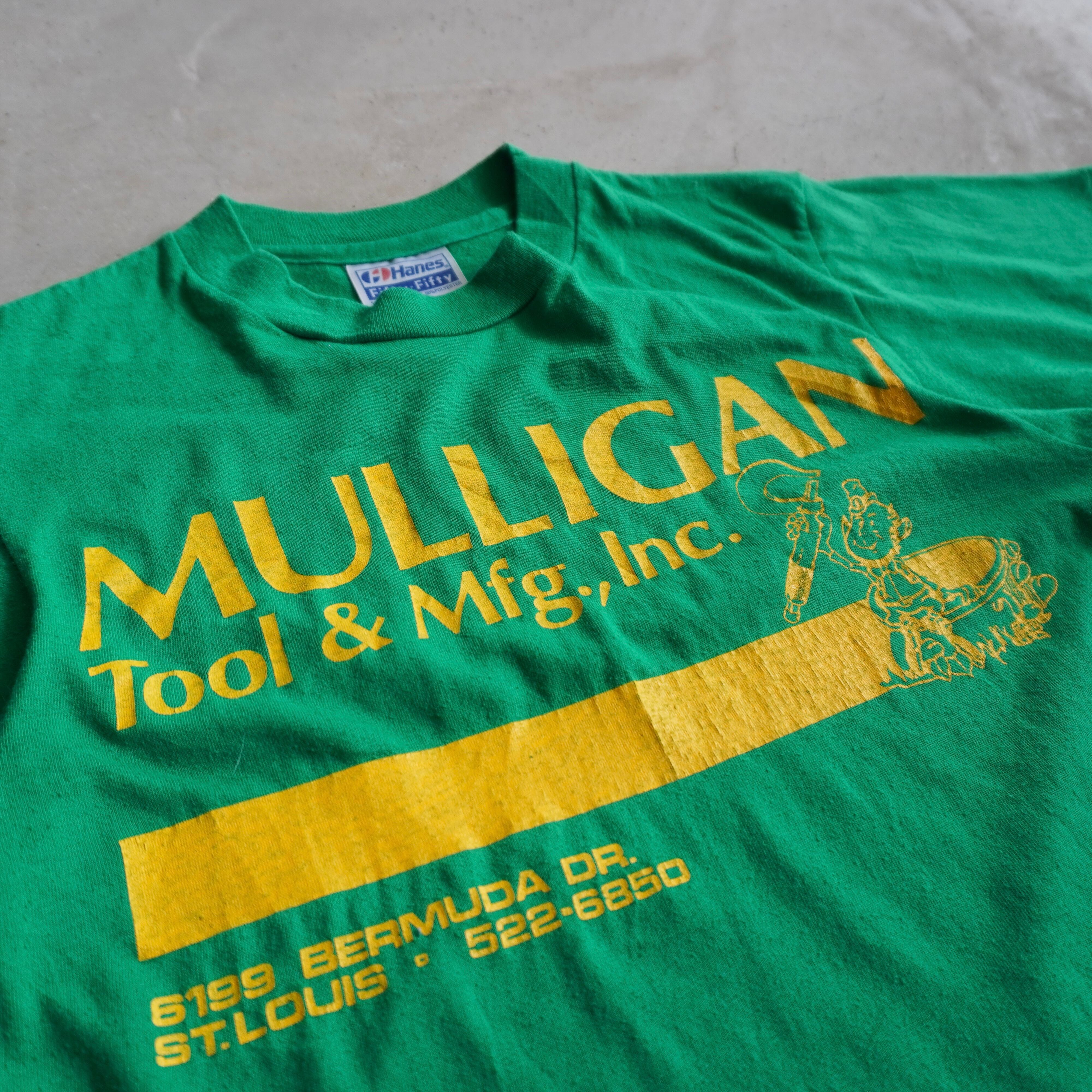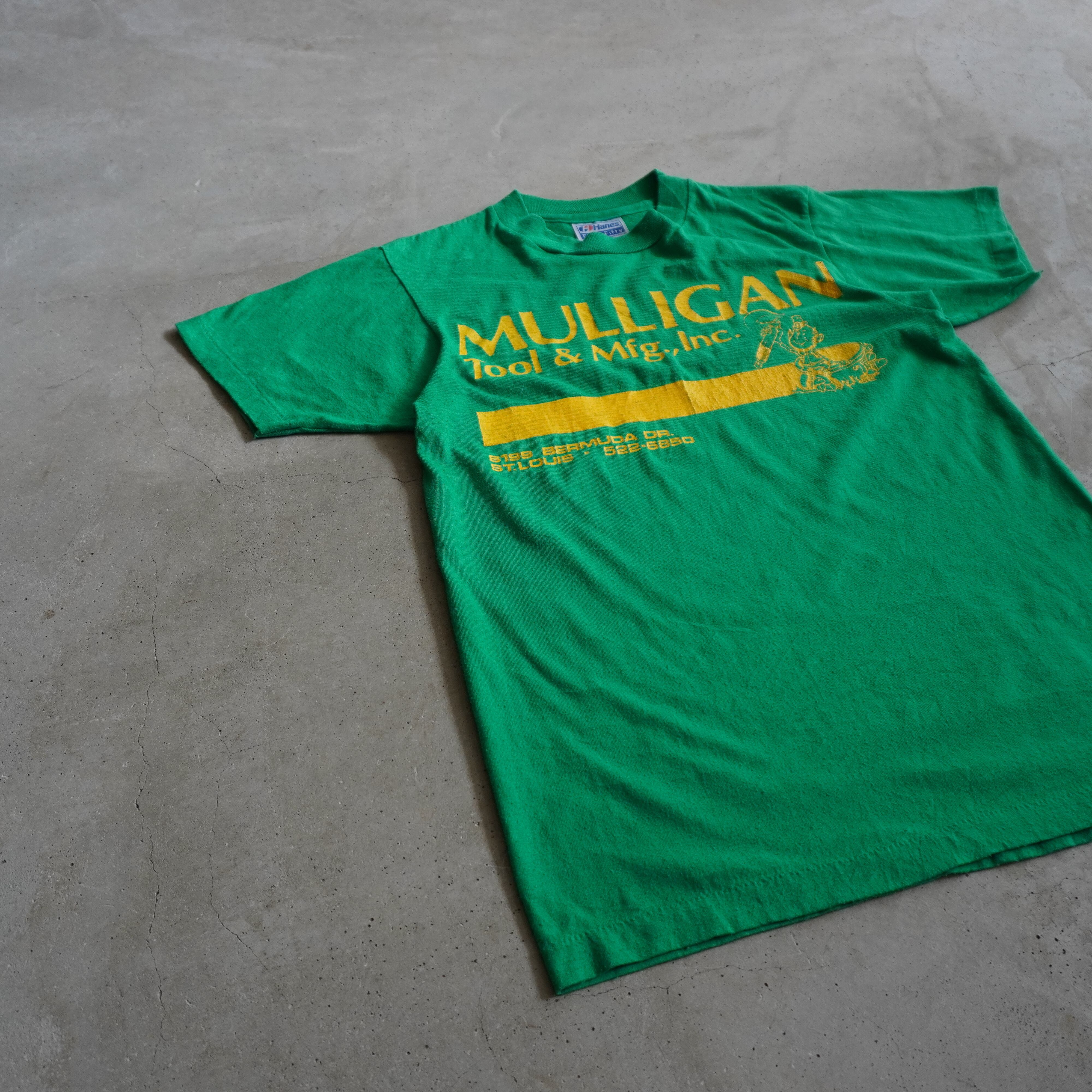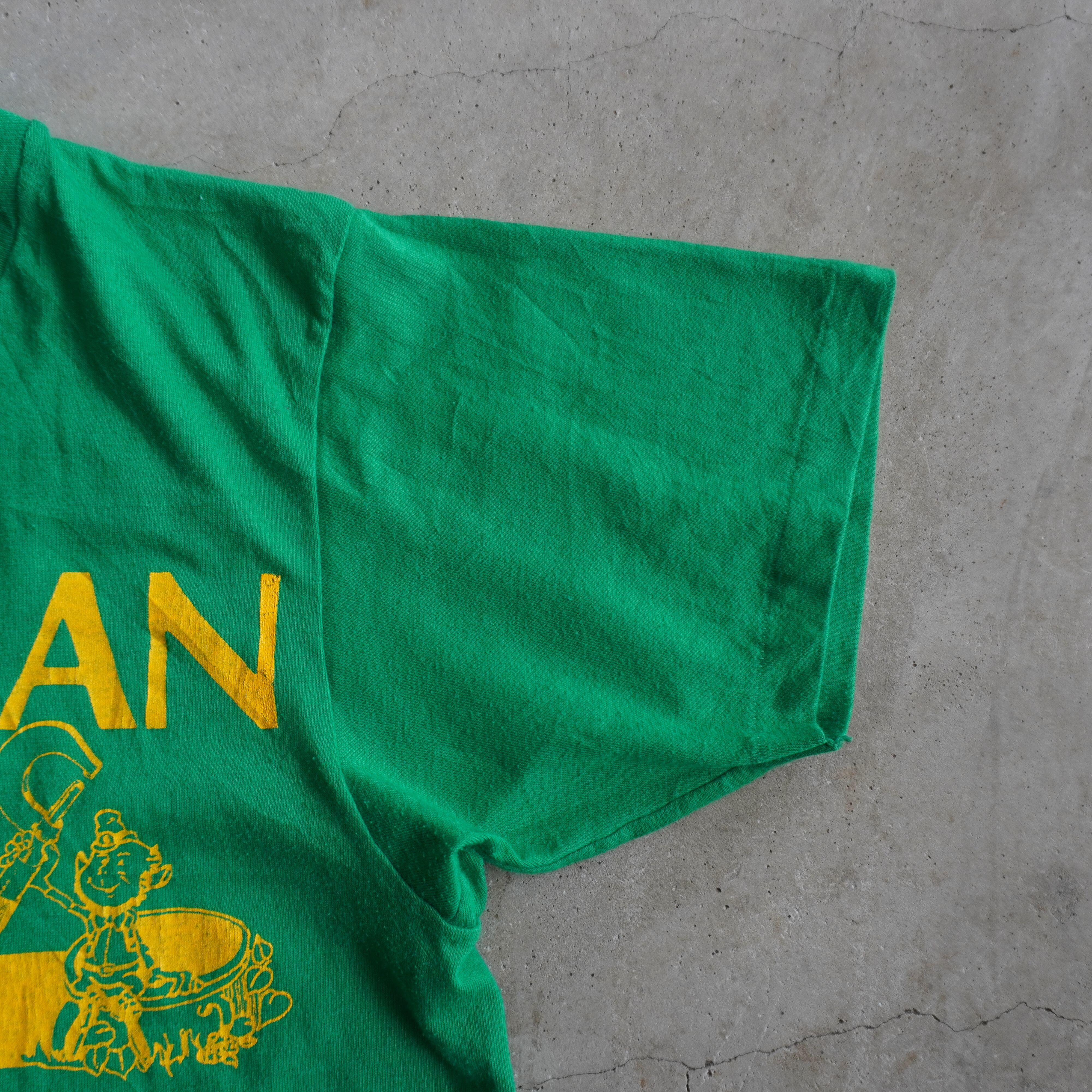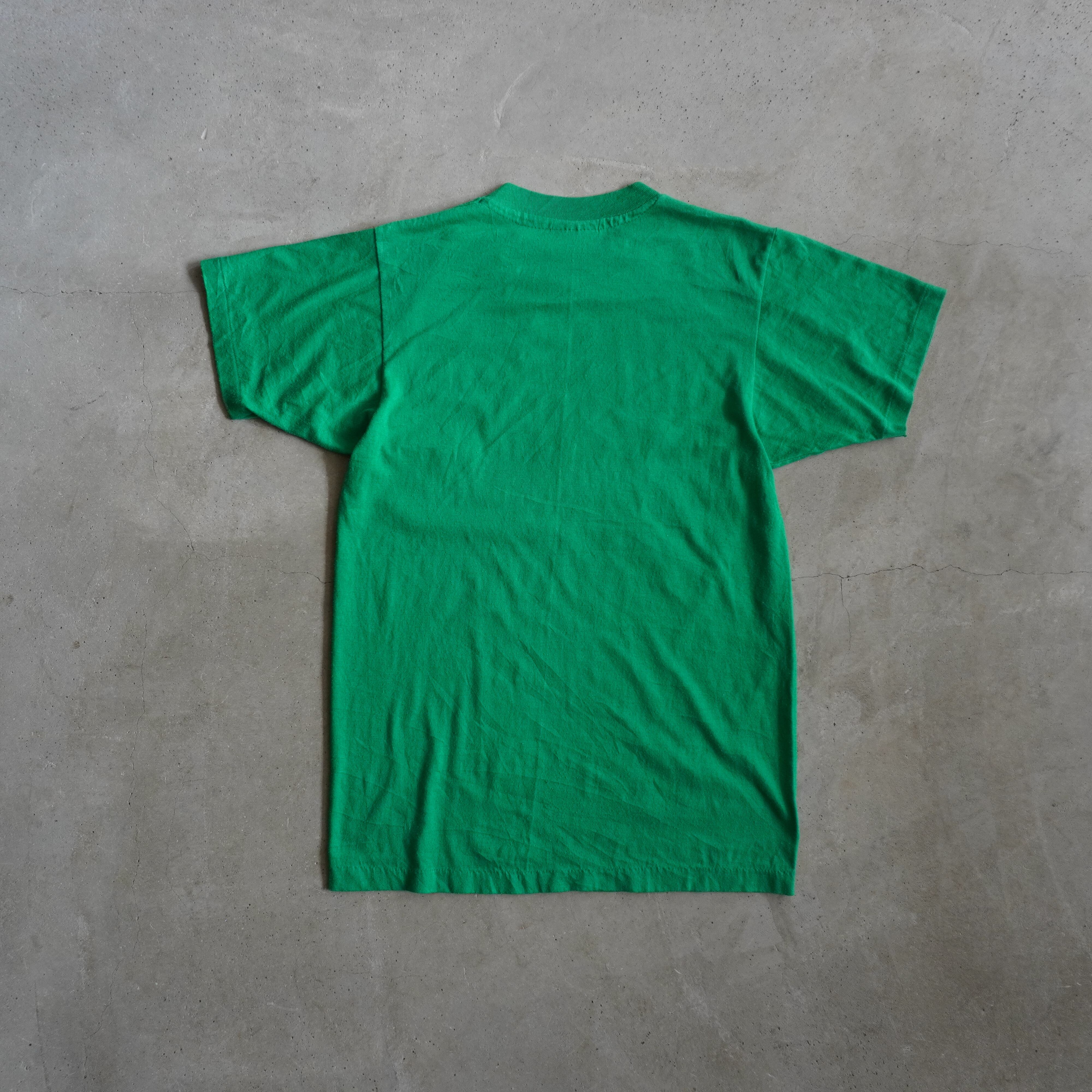 80s 鮮やかなグリーンにイエローのプリントtシャツ