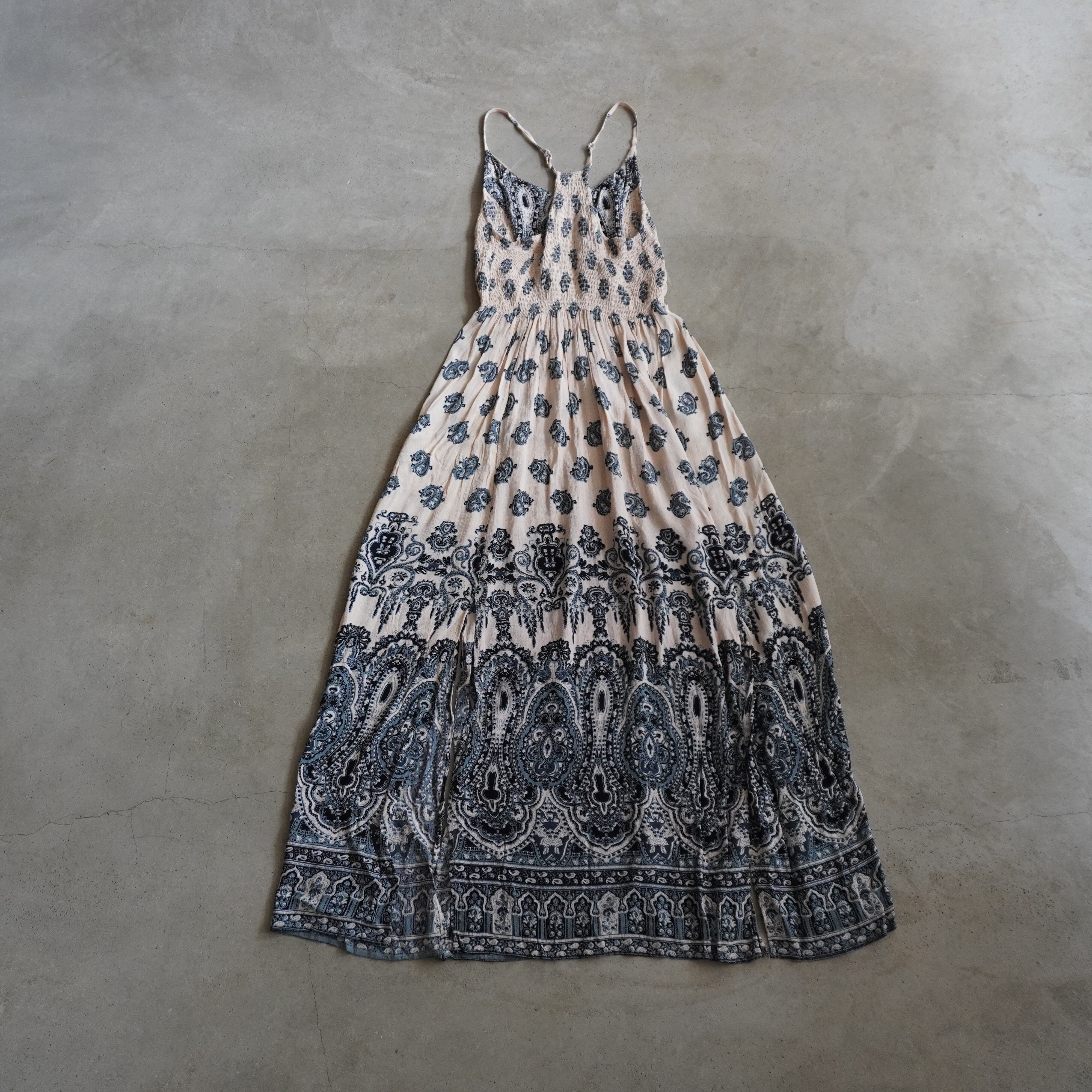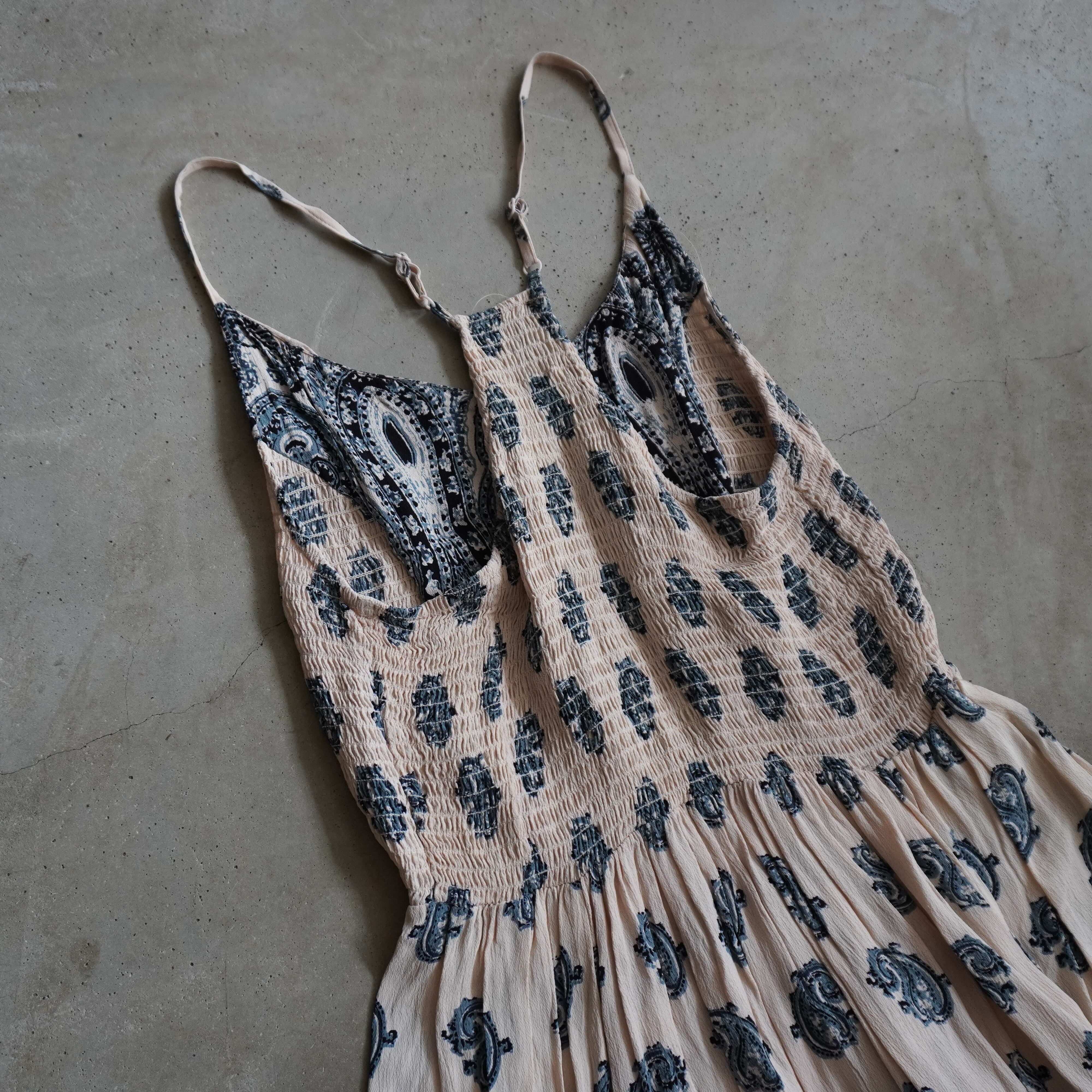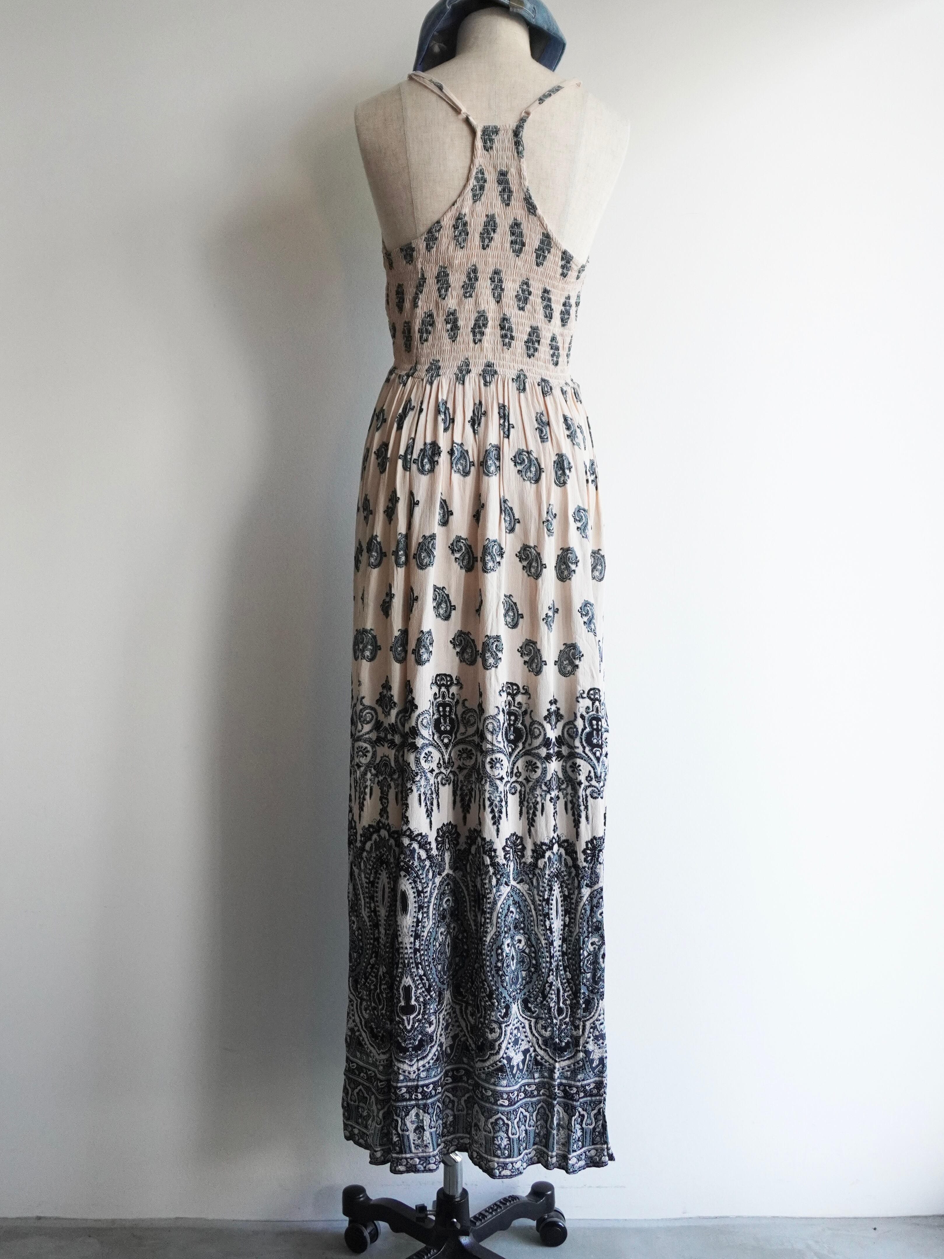 エスニックな柄に淡い配色のキャミワンピース