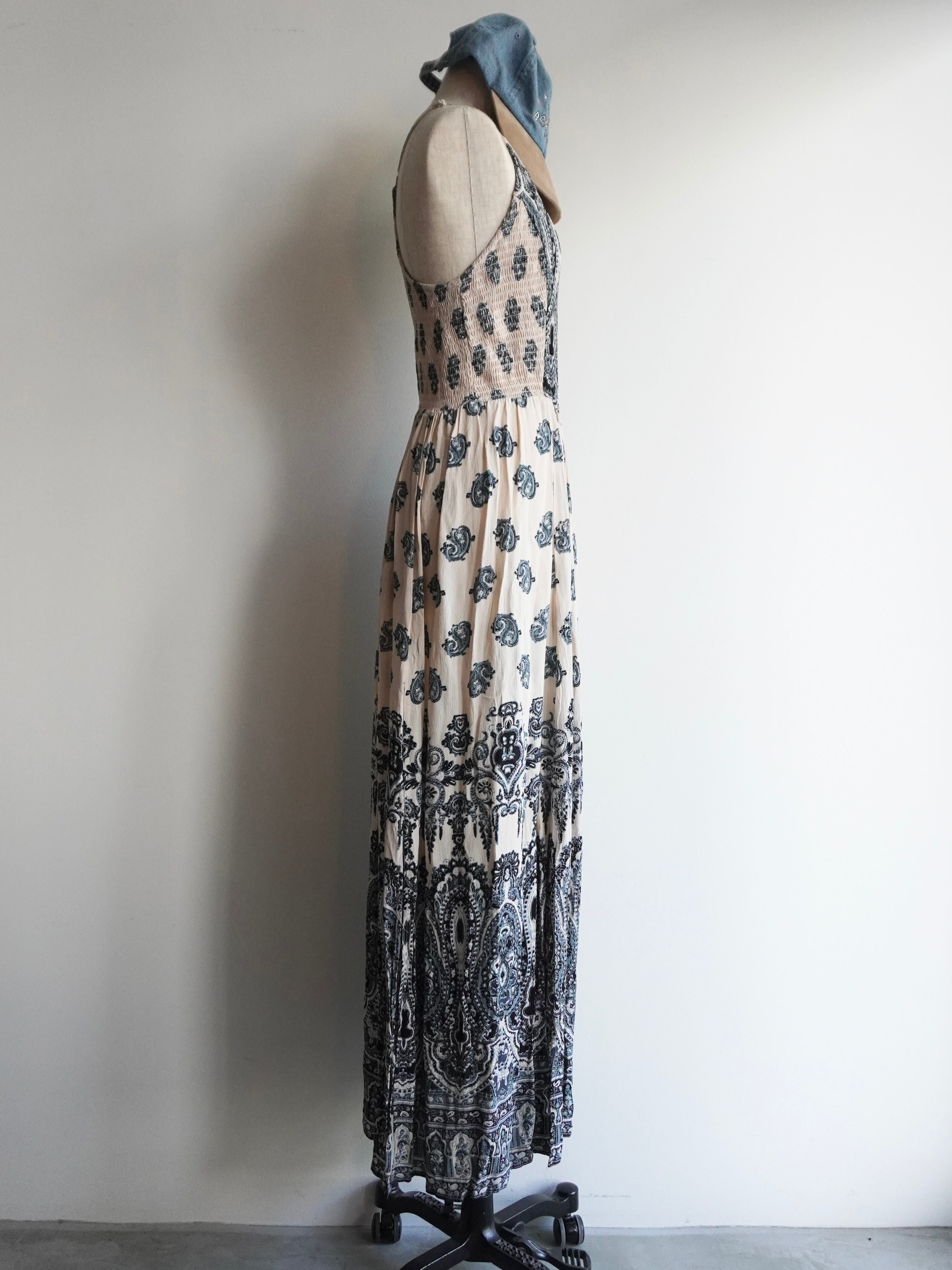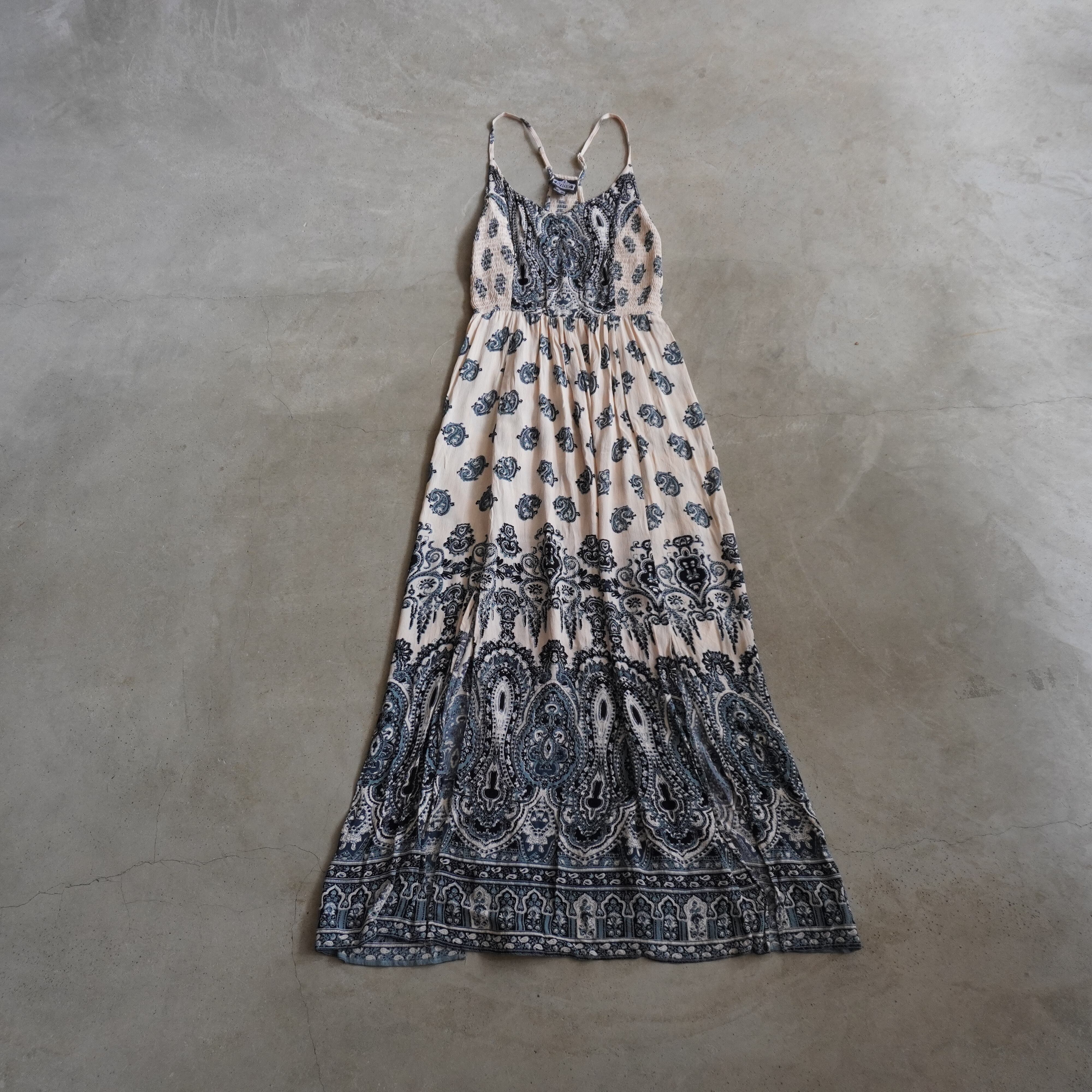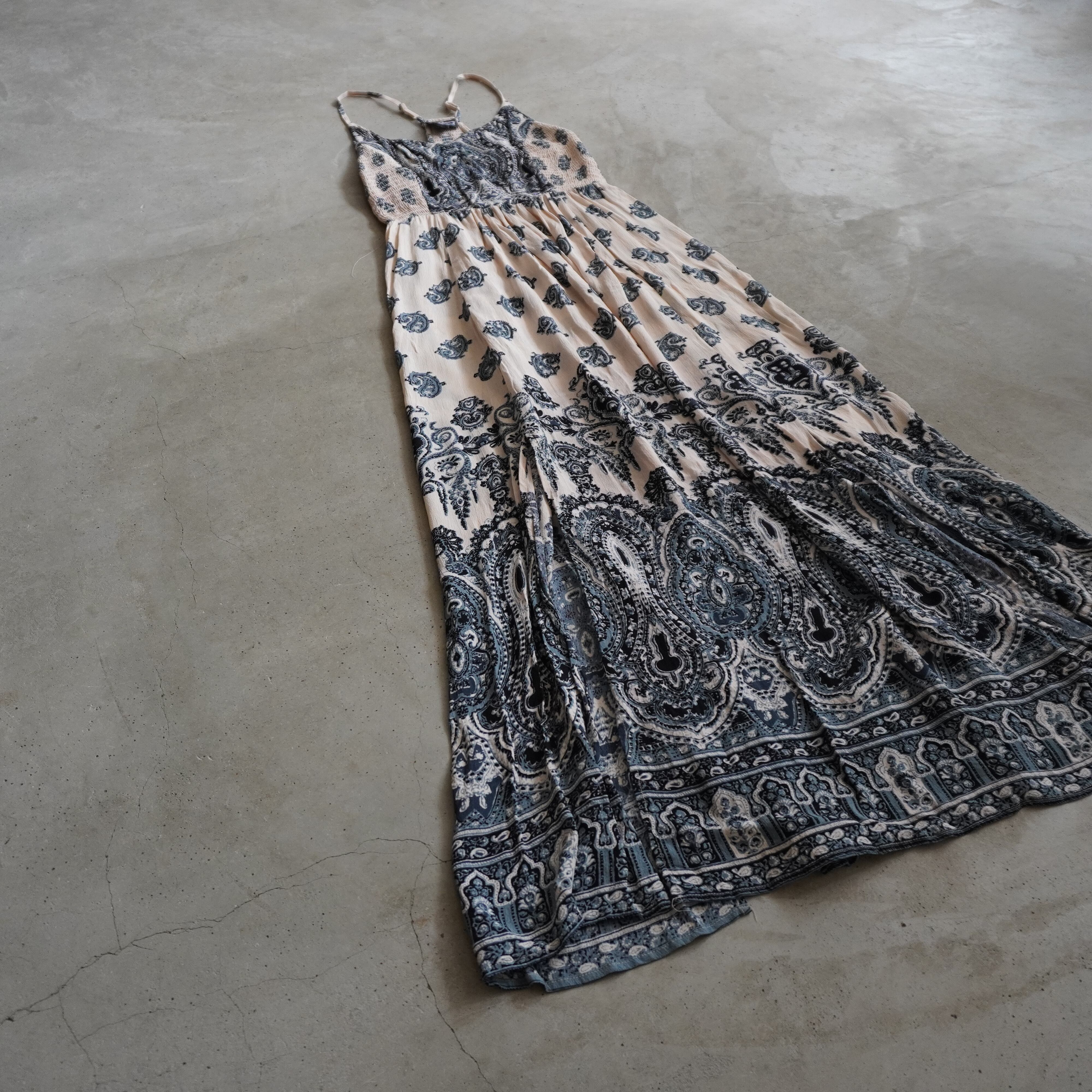 エスニックな柄に淡い配色のキャミワンピース