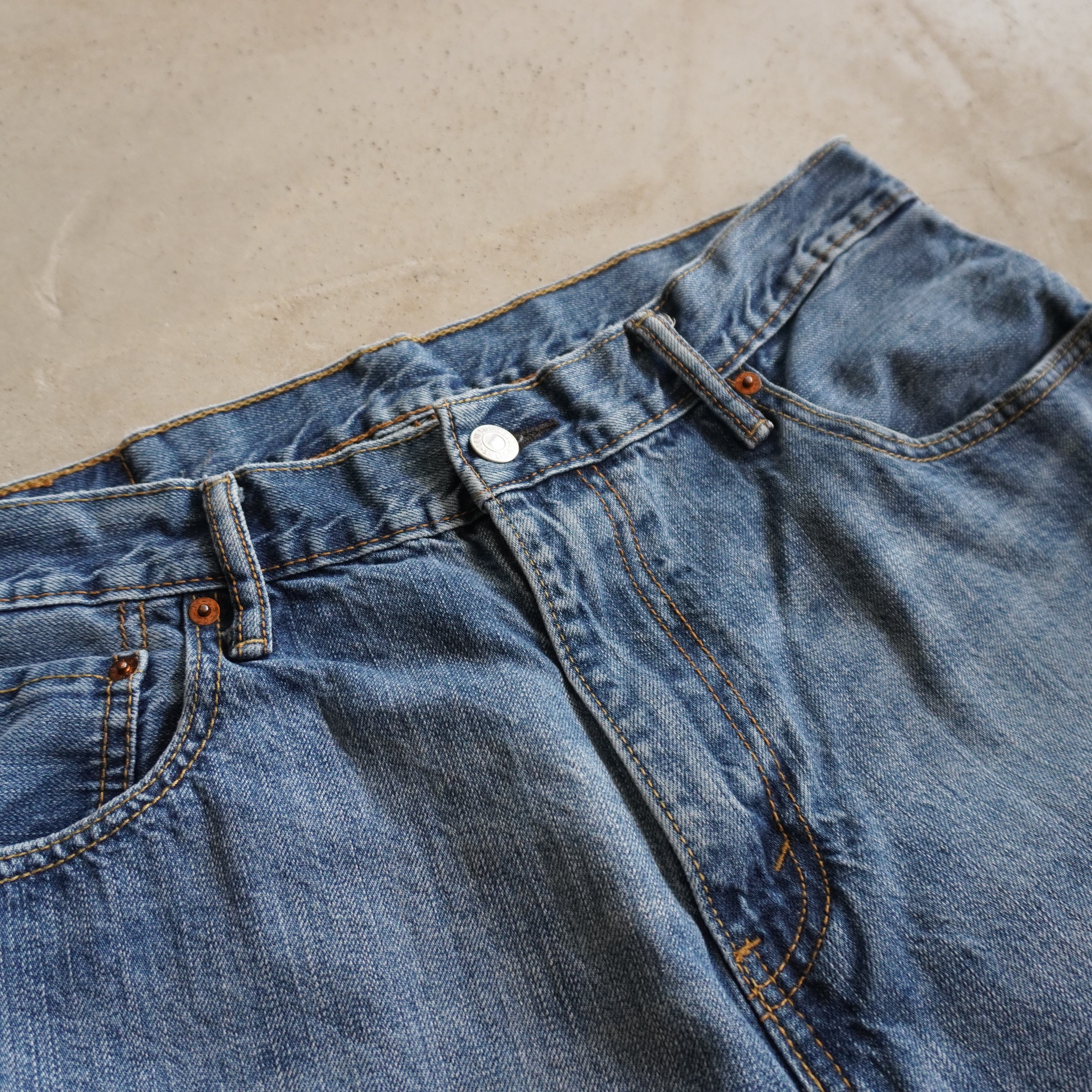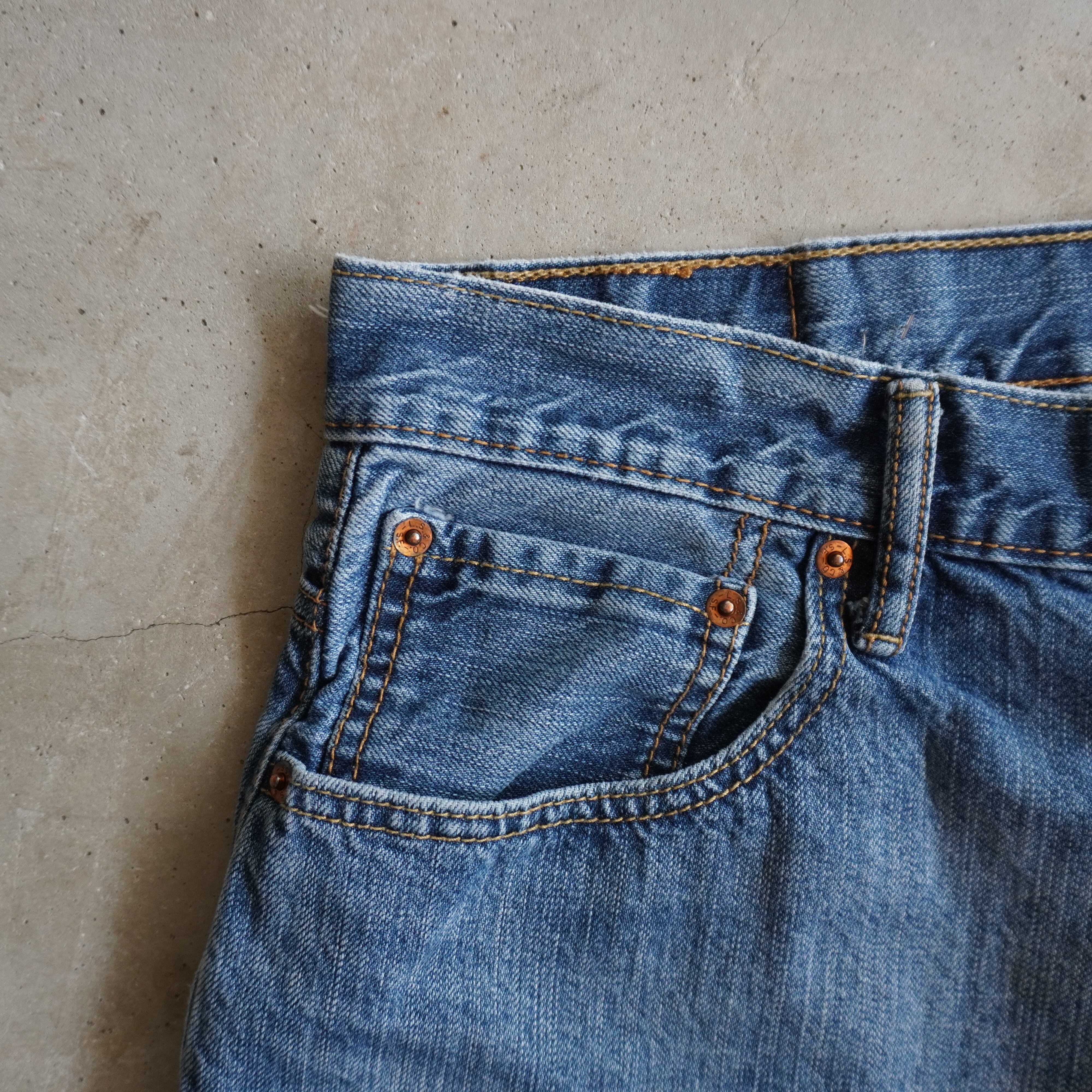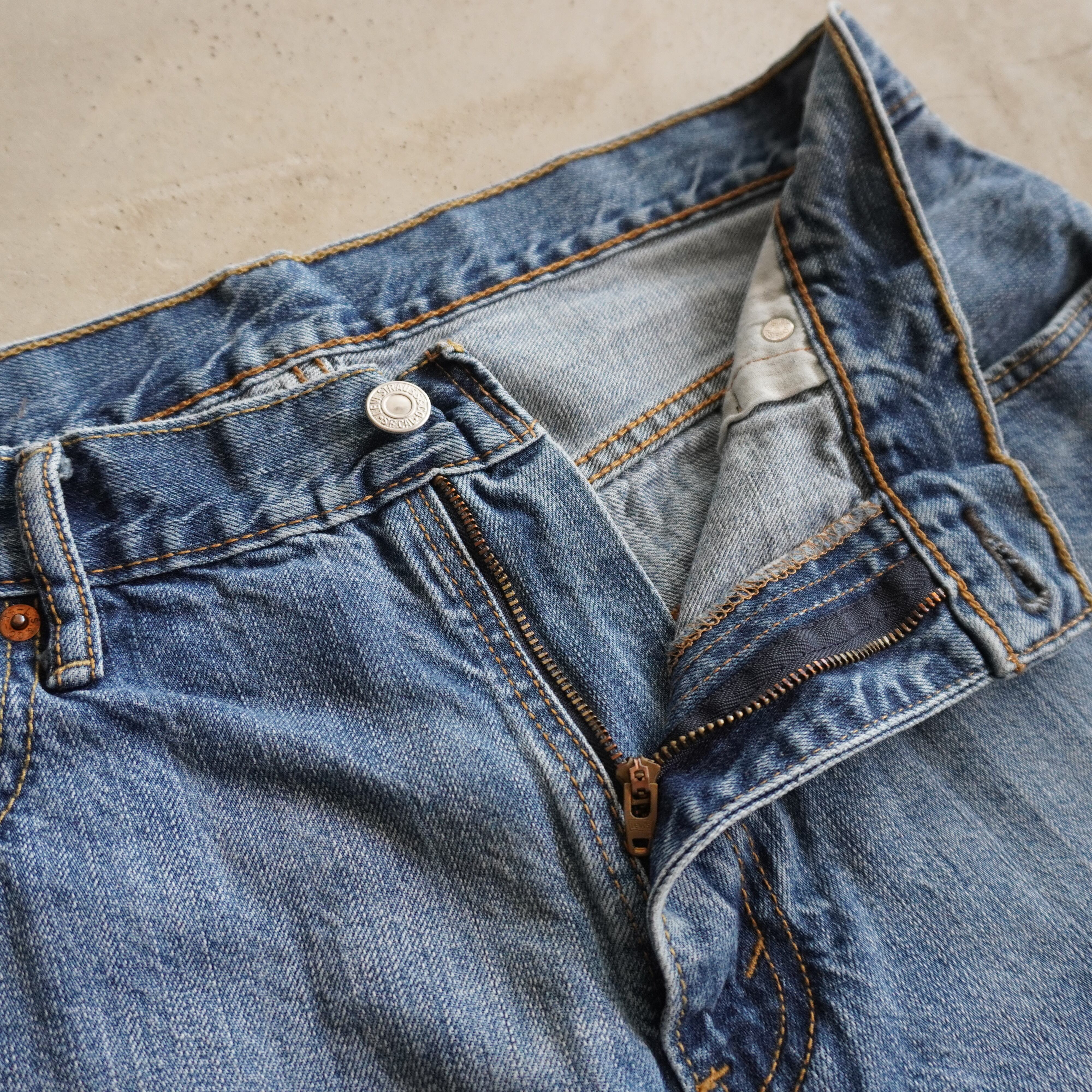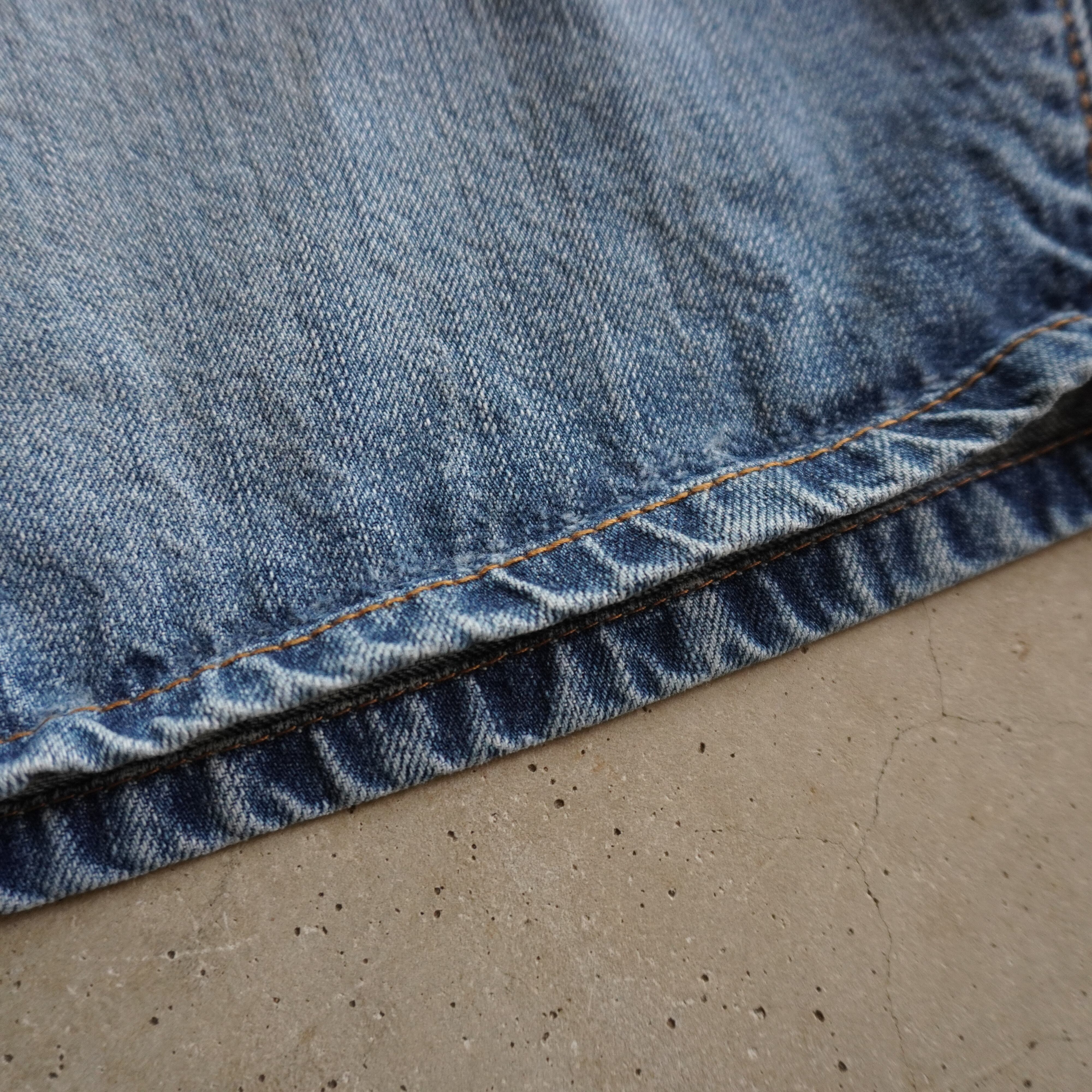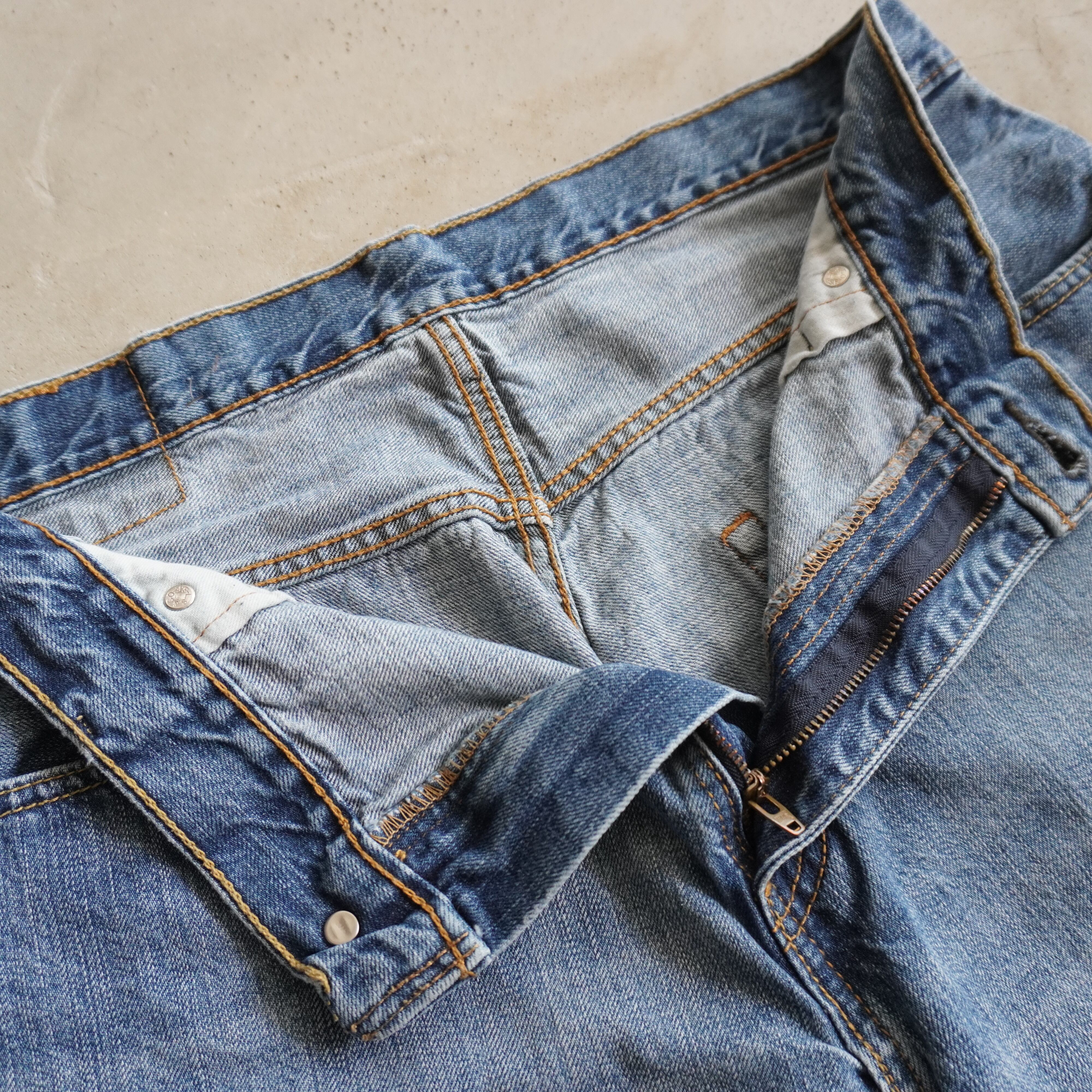 淡いブルーカラーに雰囲気のある色落ち感、綺麗めにも合わせられる1着◎
