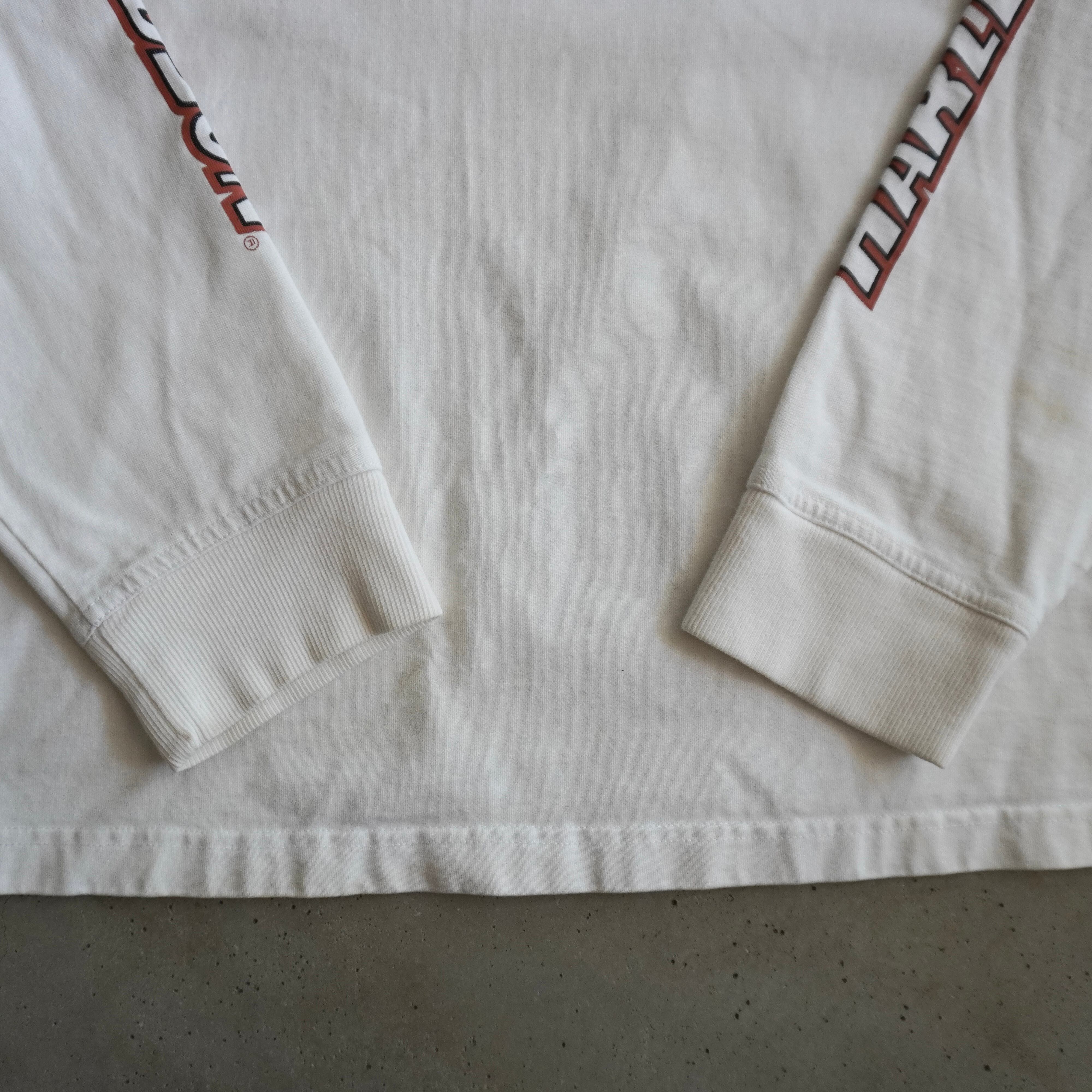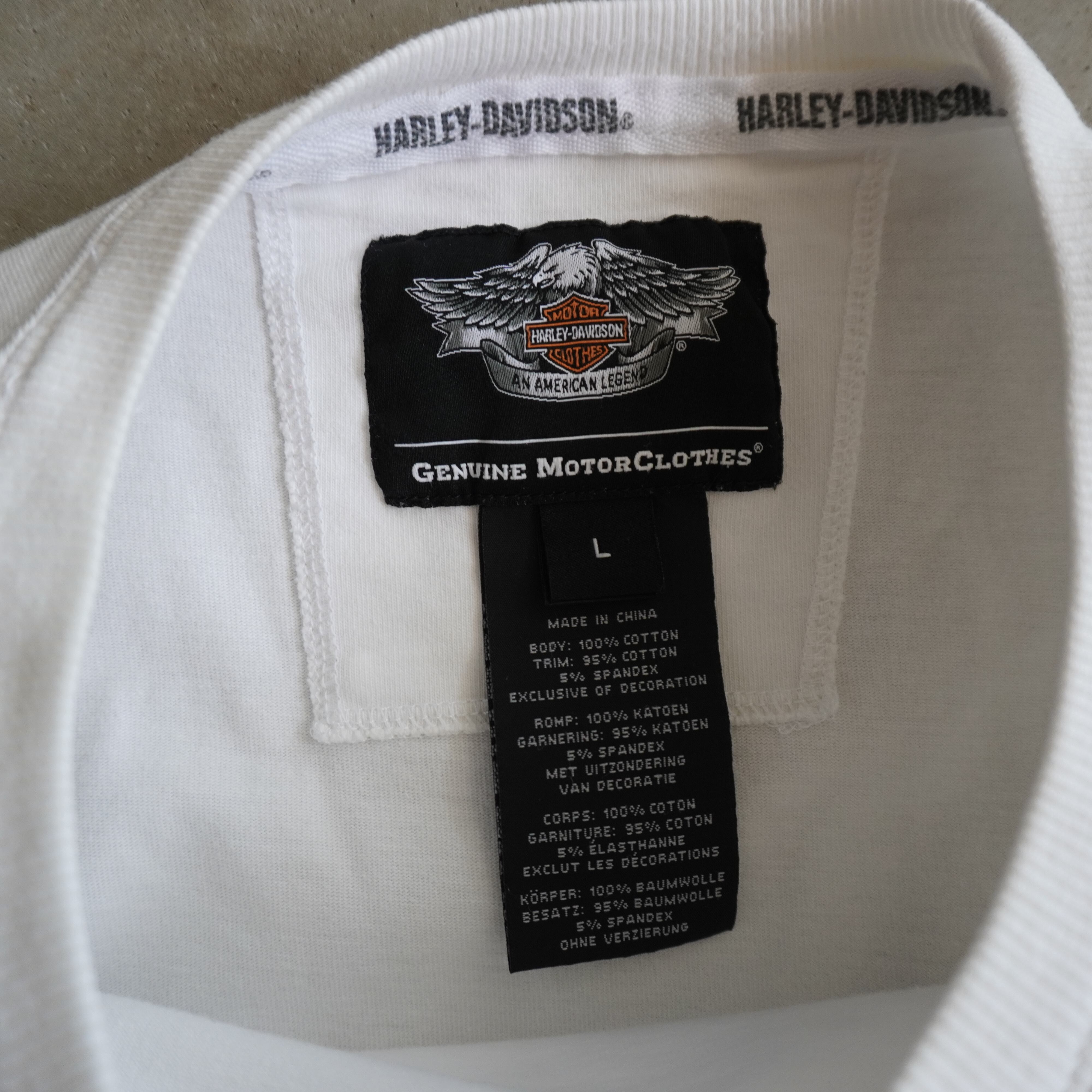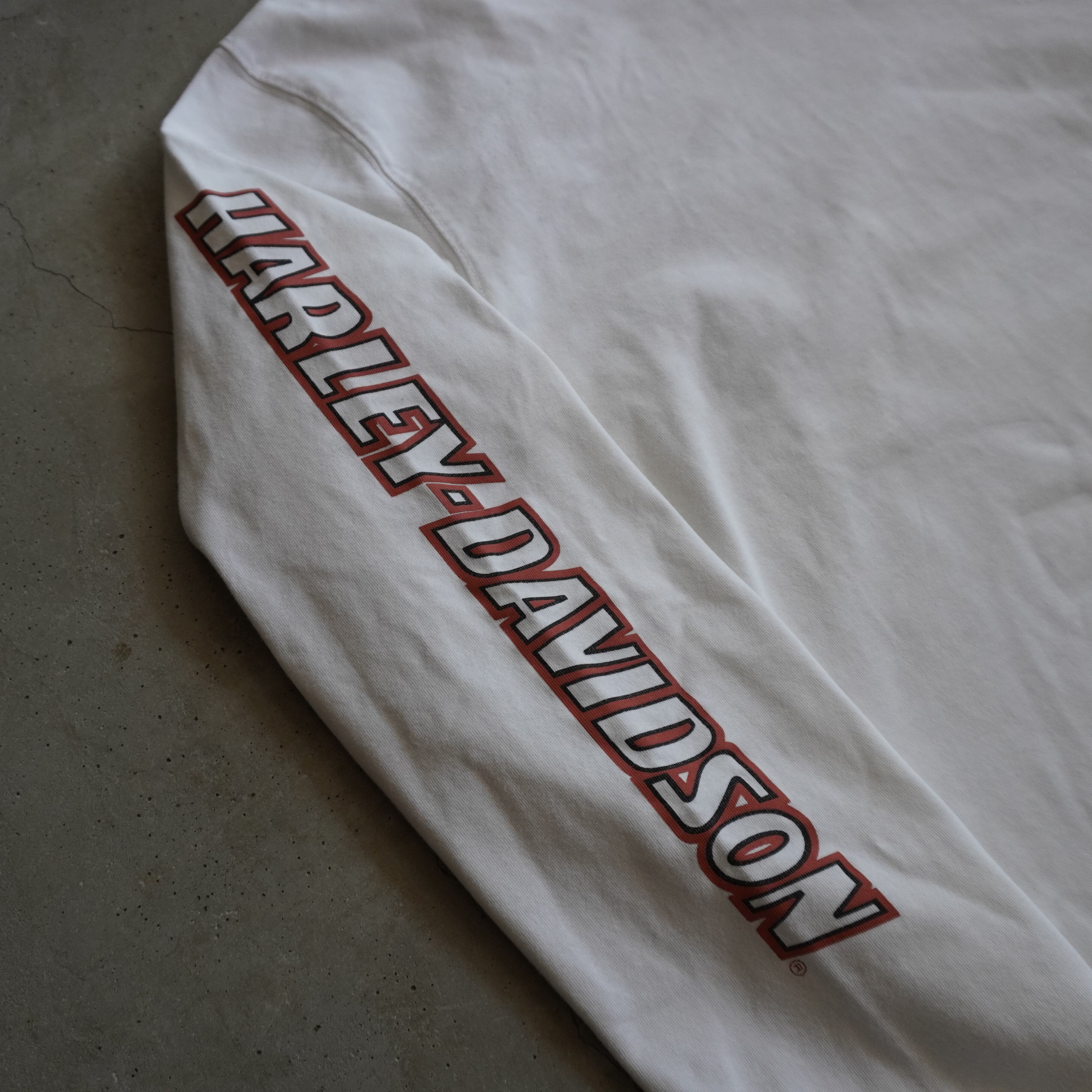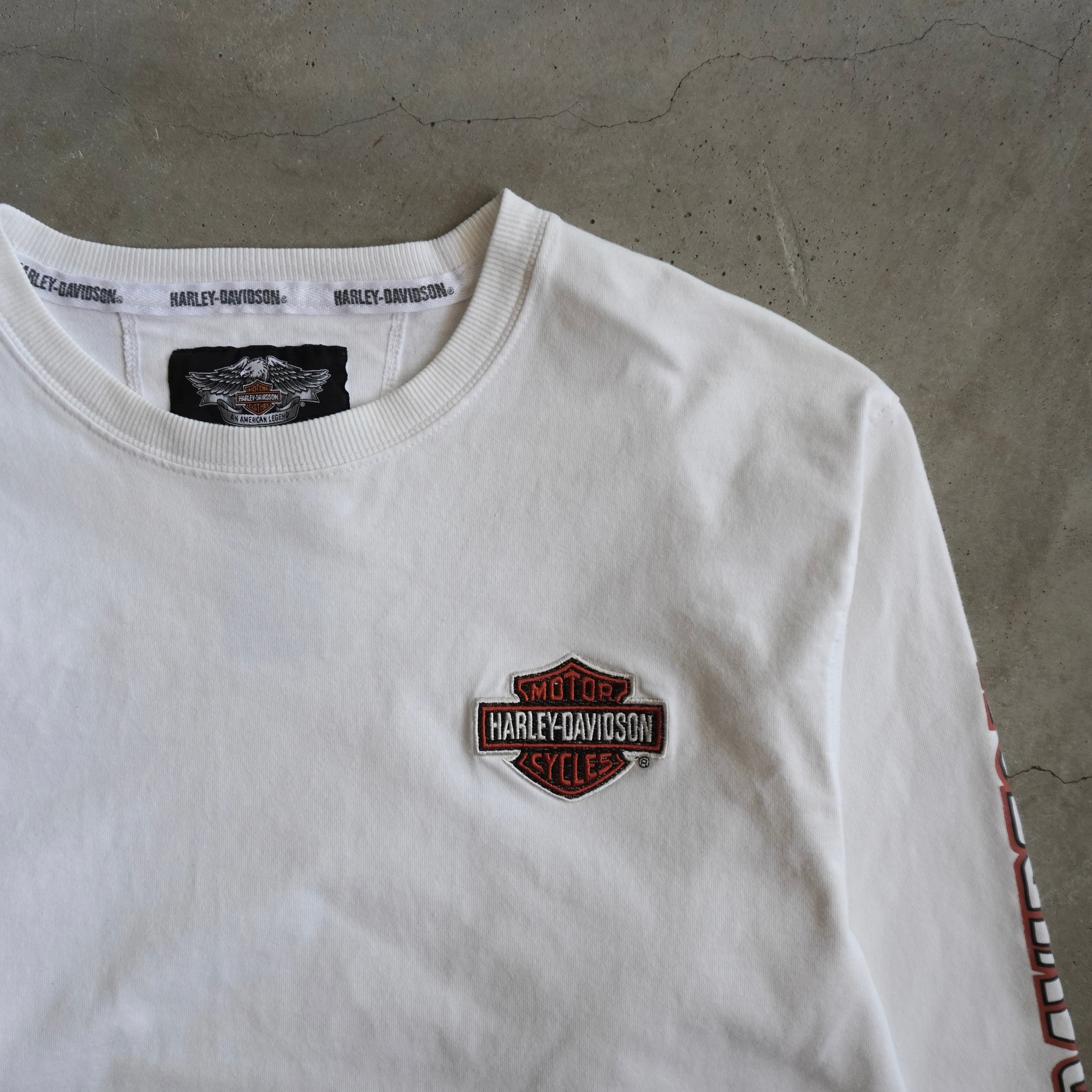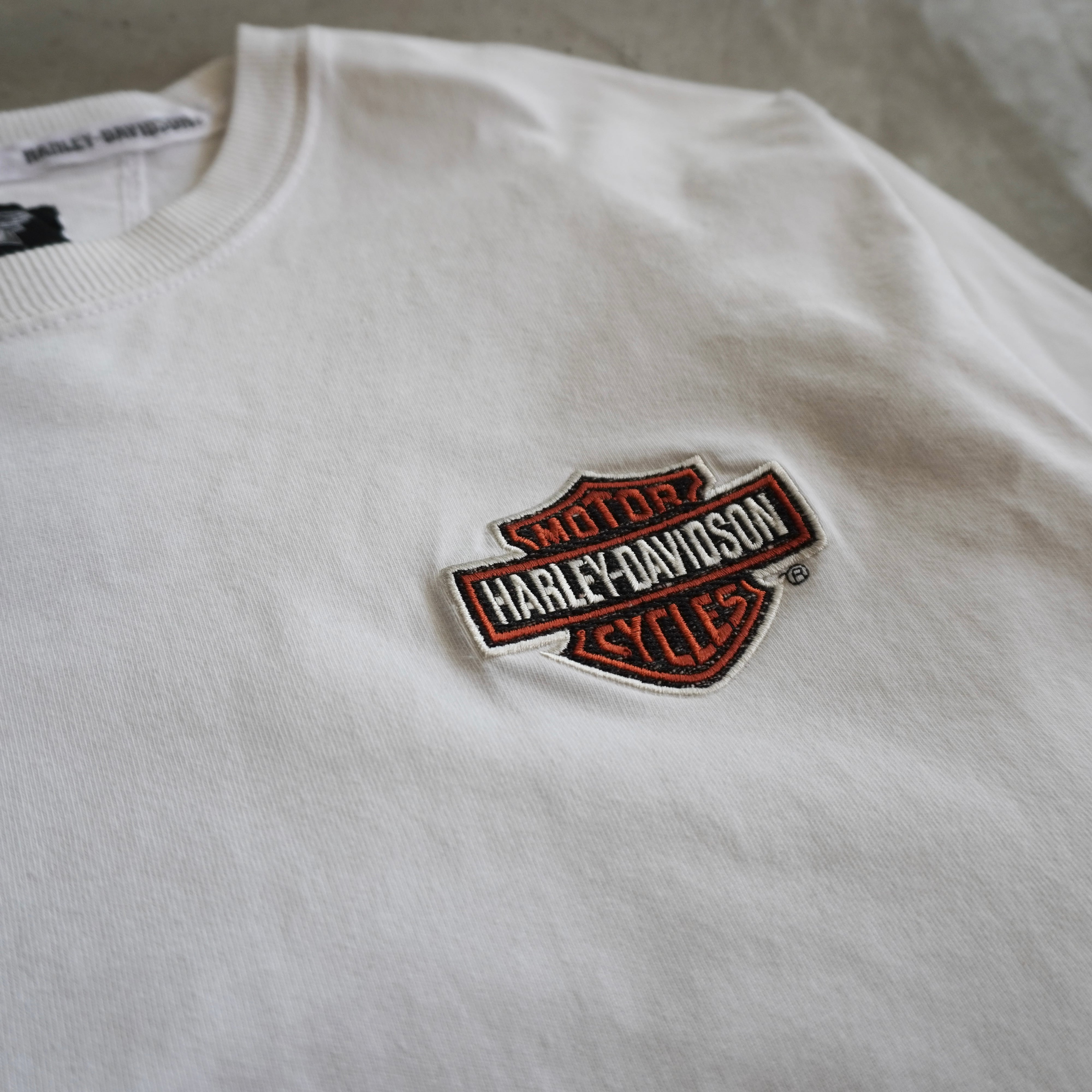 ホワイトカラーのシンプルなワンポイント刺繍、両袖プリント
