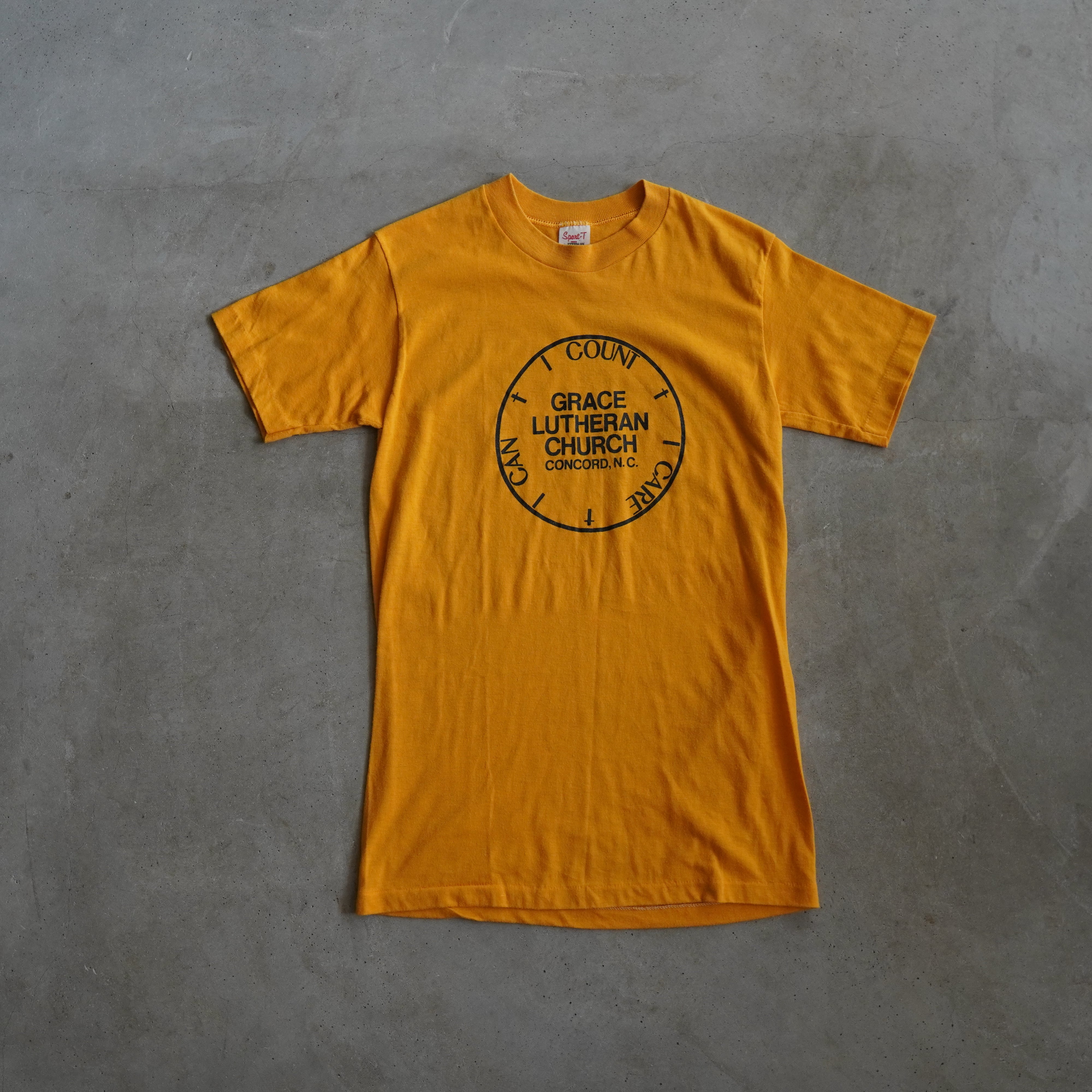 深みのあるイエローとクタっとした薄手の生地感が古着らしい1着です。是非、デニム合わせで◎