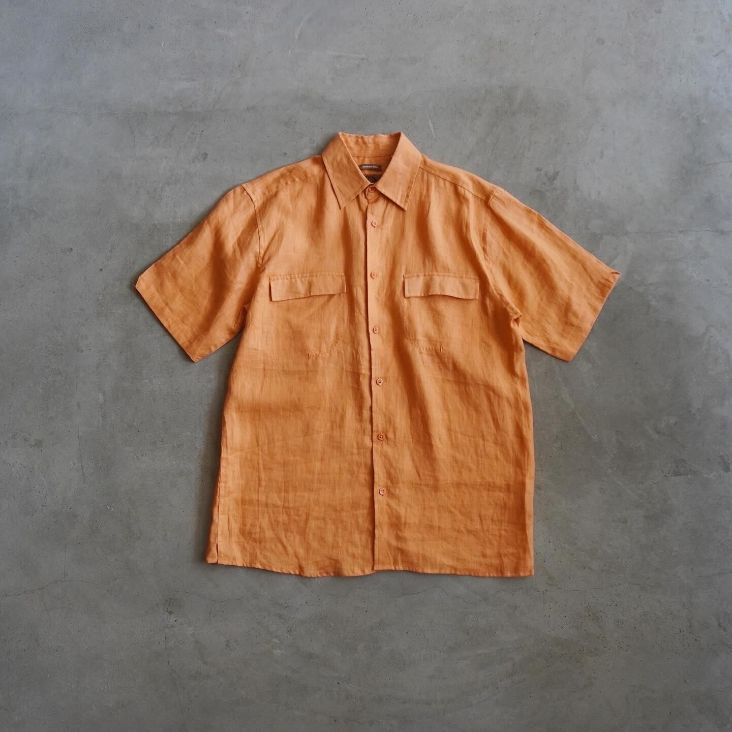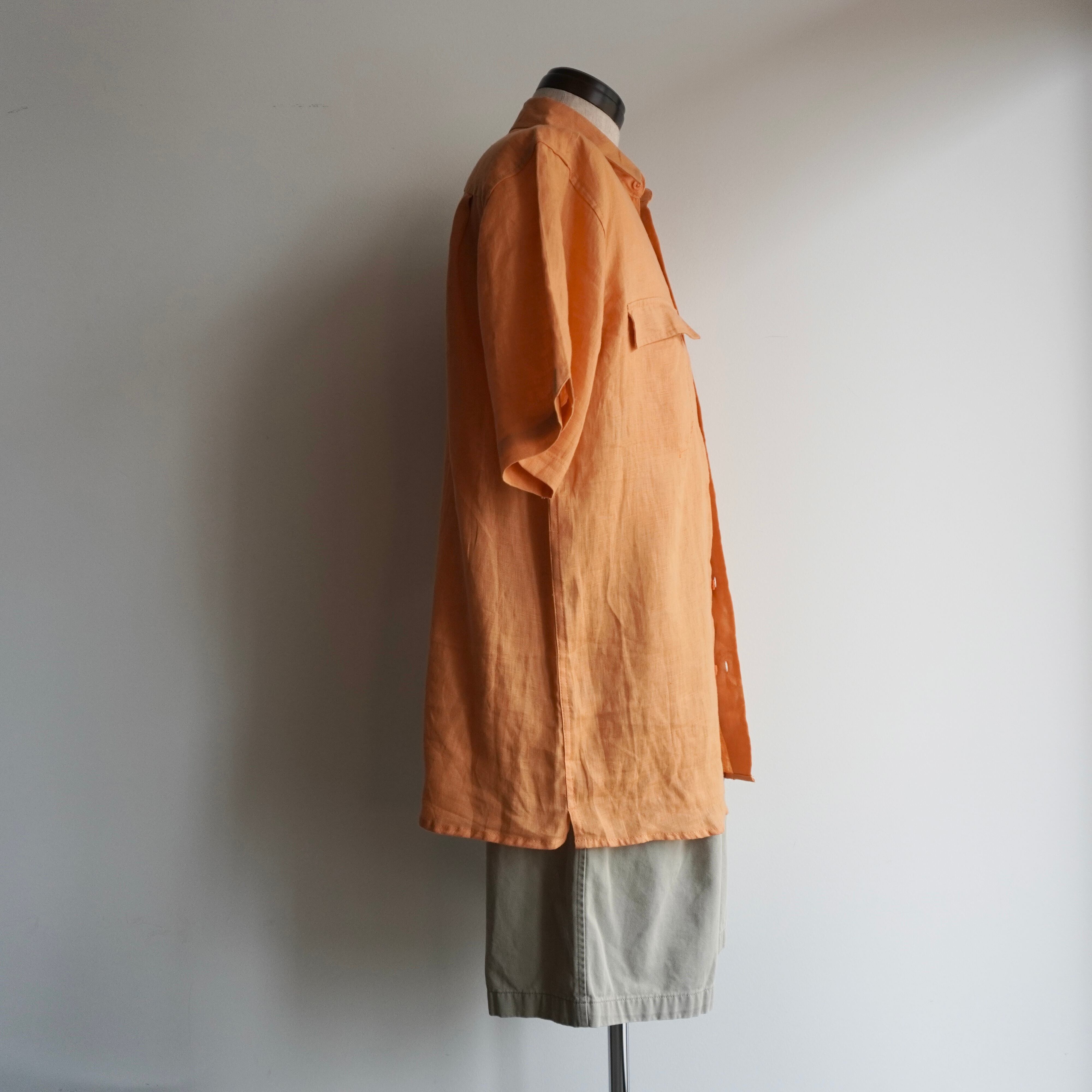 夏らしい明るめのオレンジカラーです。サイズ表記はメンズのMですが、一般的なサイズよりもゆったりと着ていただけます。made in Bangladesh.
