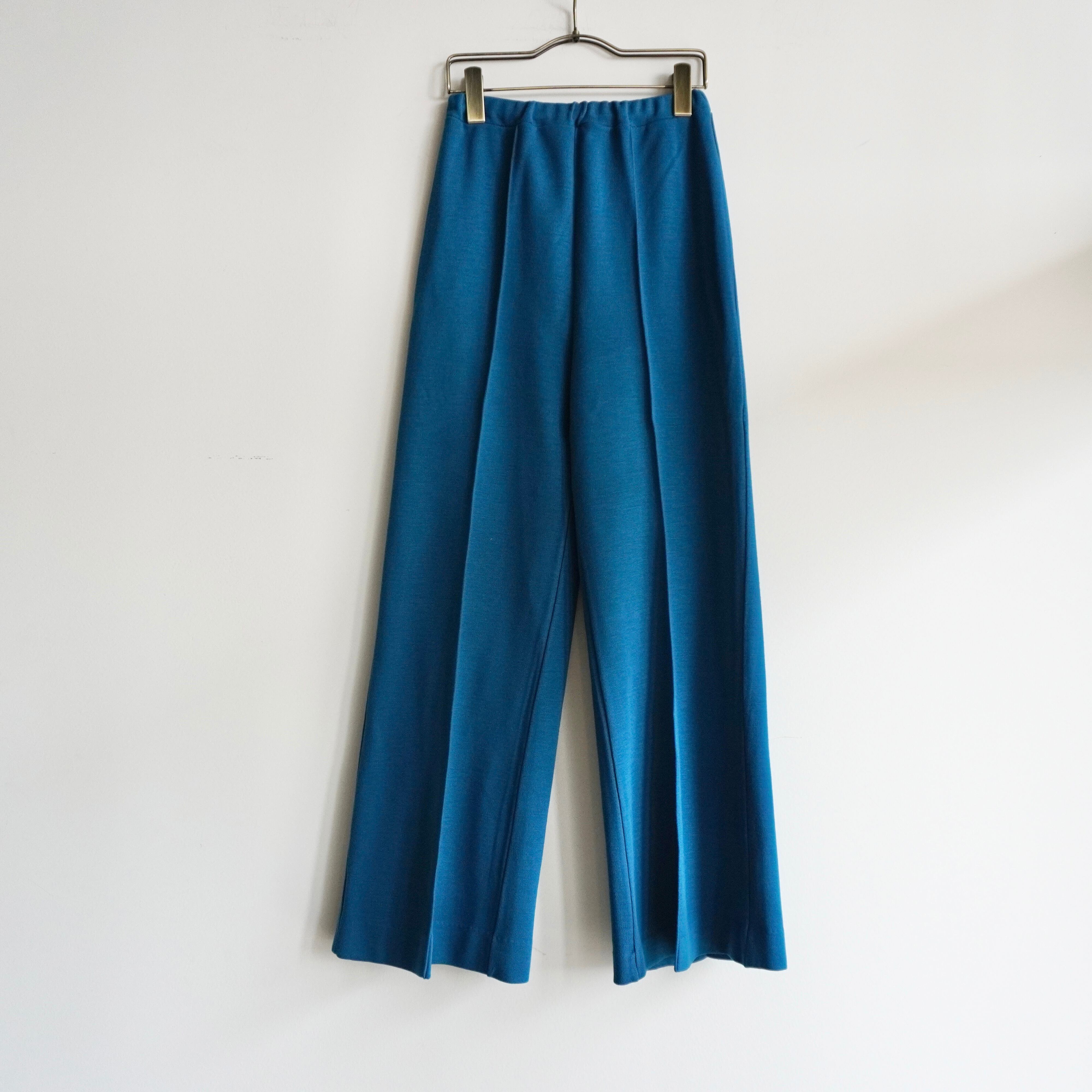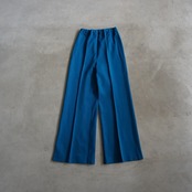 ワイドでフレアなシルエットがとても綺麗なイージーパンツ。鮮やかなブルーが綺麗です。ウエストゴム仕様なので楽に履いていただけます◎