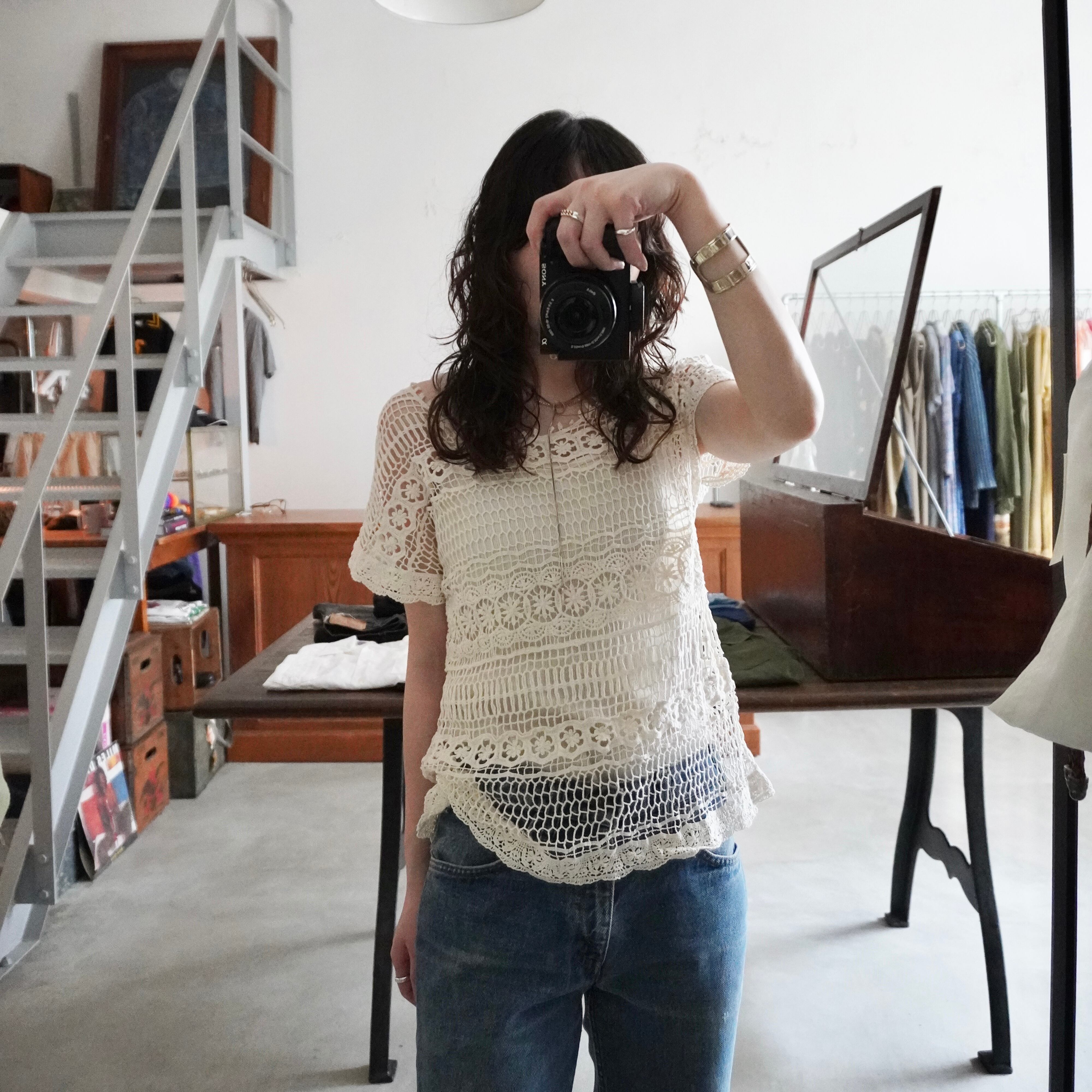 でこぼことしたあみ模様が可愛らしいクロシェトップス。デニム合わせでカジュアルにも、ワンピースやスカートで綺麗めスタイルにも着ていただけます◎