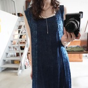 スクエアネックに程よくフレアなシルエット、体のラインを拾いすぎず大人っぽく着ていただけます◎インディゴブルーが可愛いです。