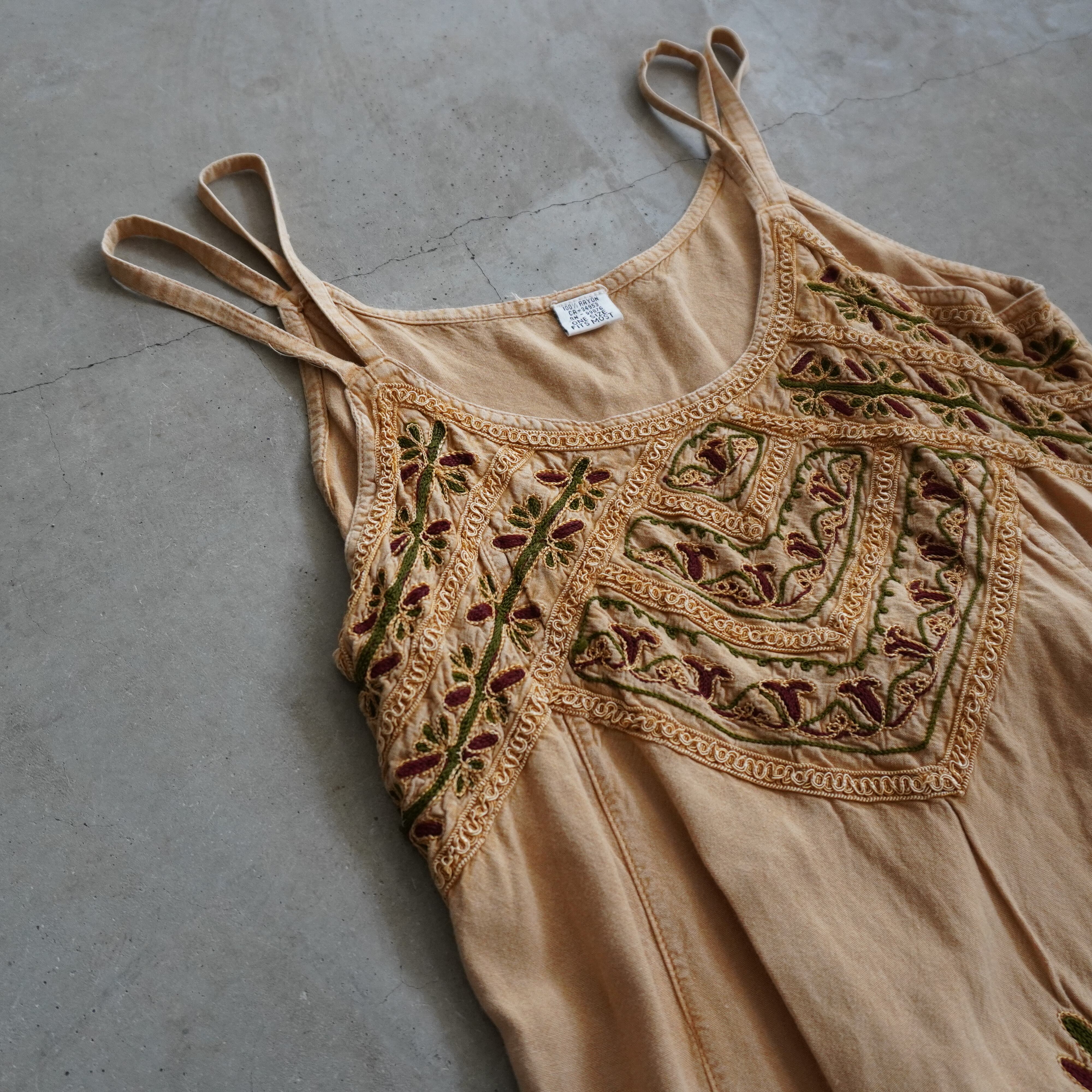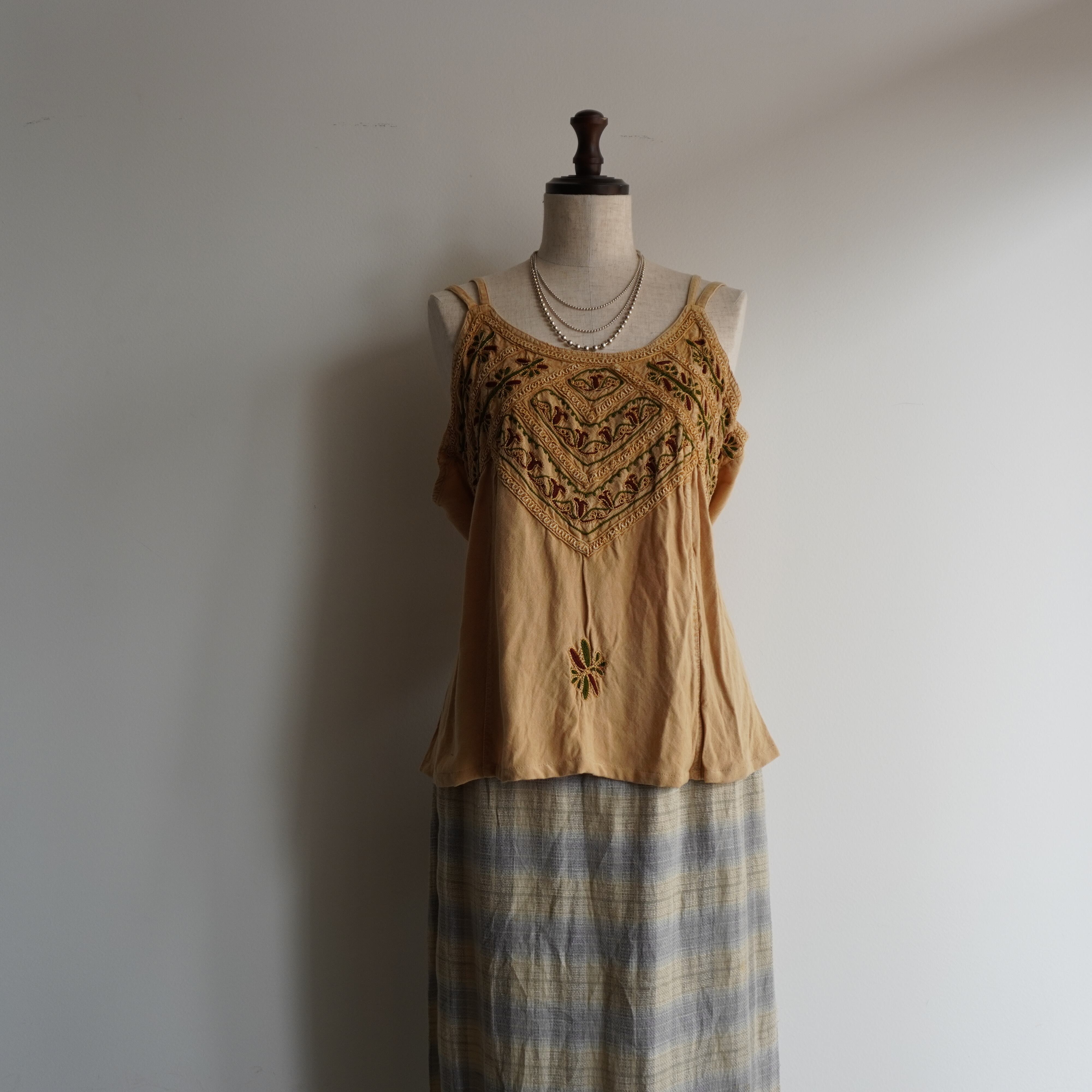 インド製レーヨン刺繍キャミトップス。