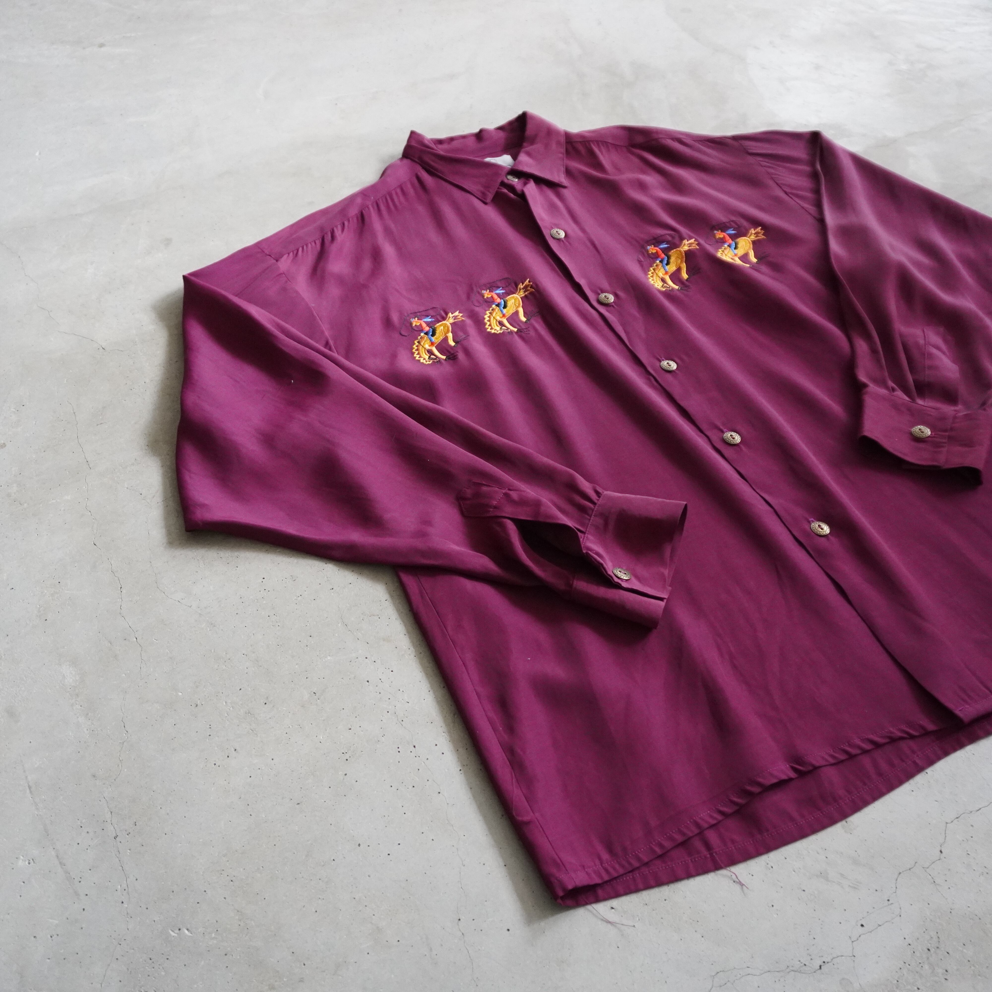 秋らしい落ち着いたカラーに鮮やかなカウボーイ刺繍が施されたメンズシャツ。