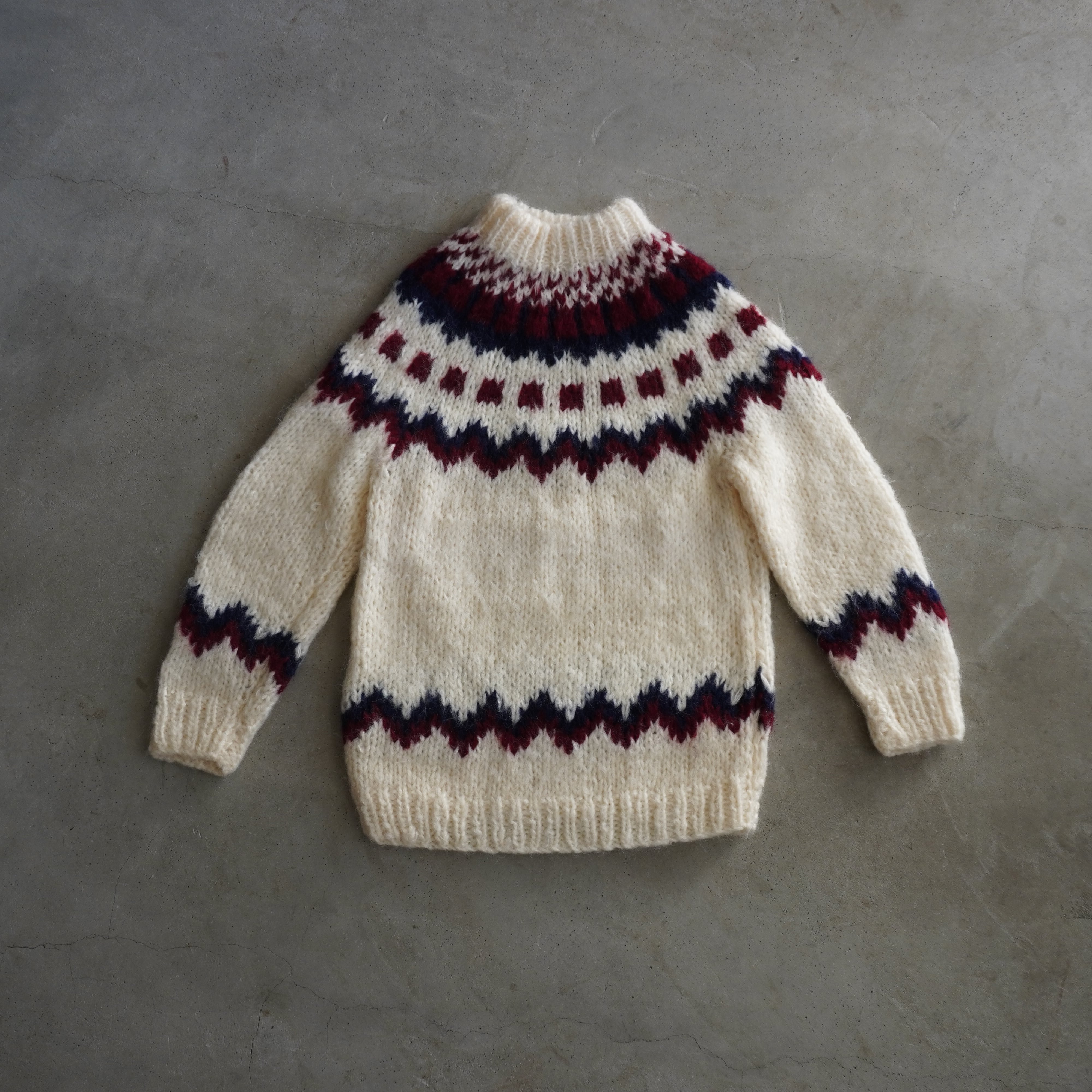 白、赤、紺の配色が可愛らしいノルディックニット