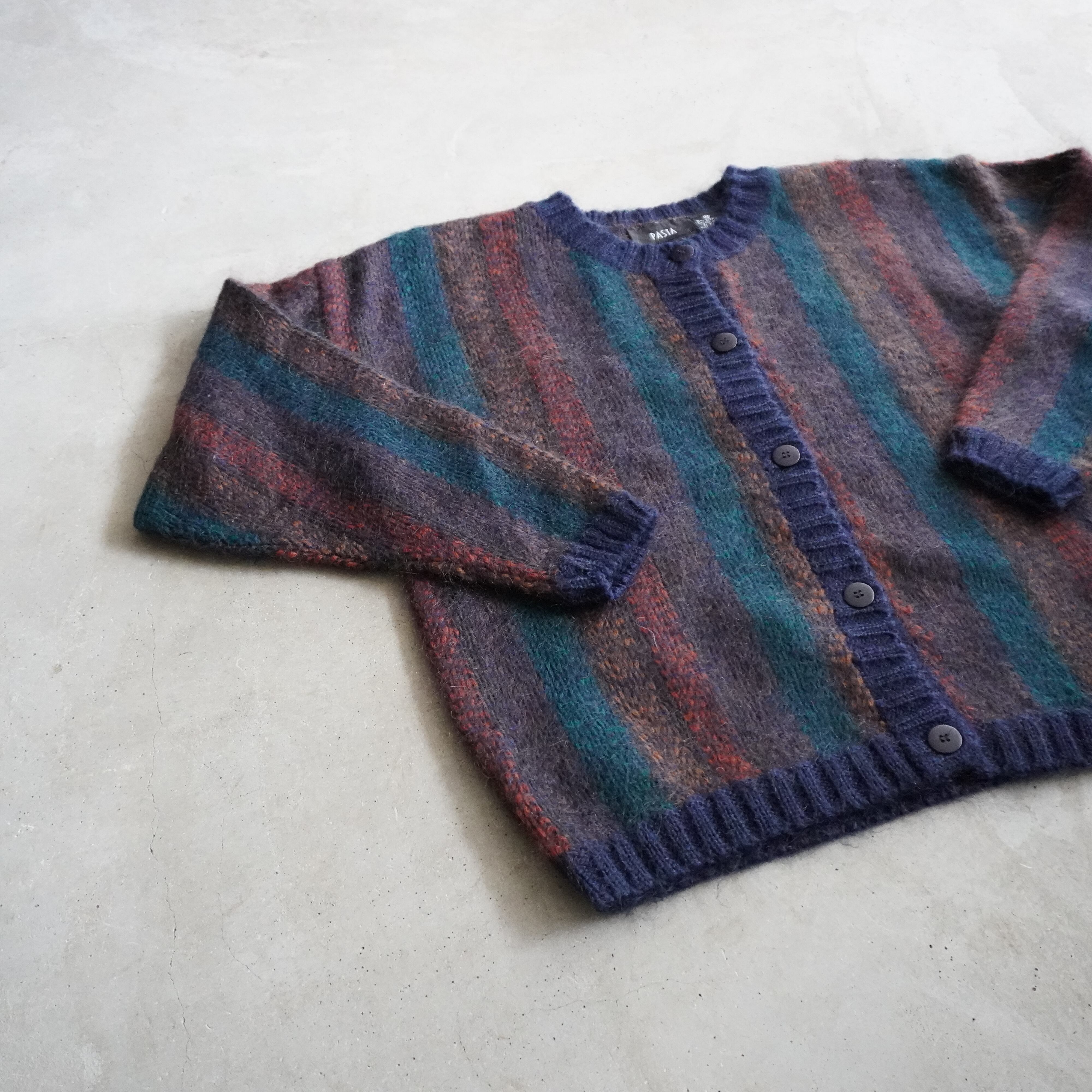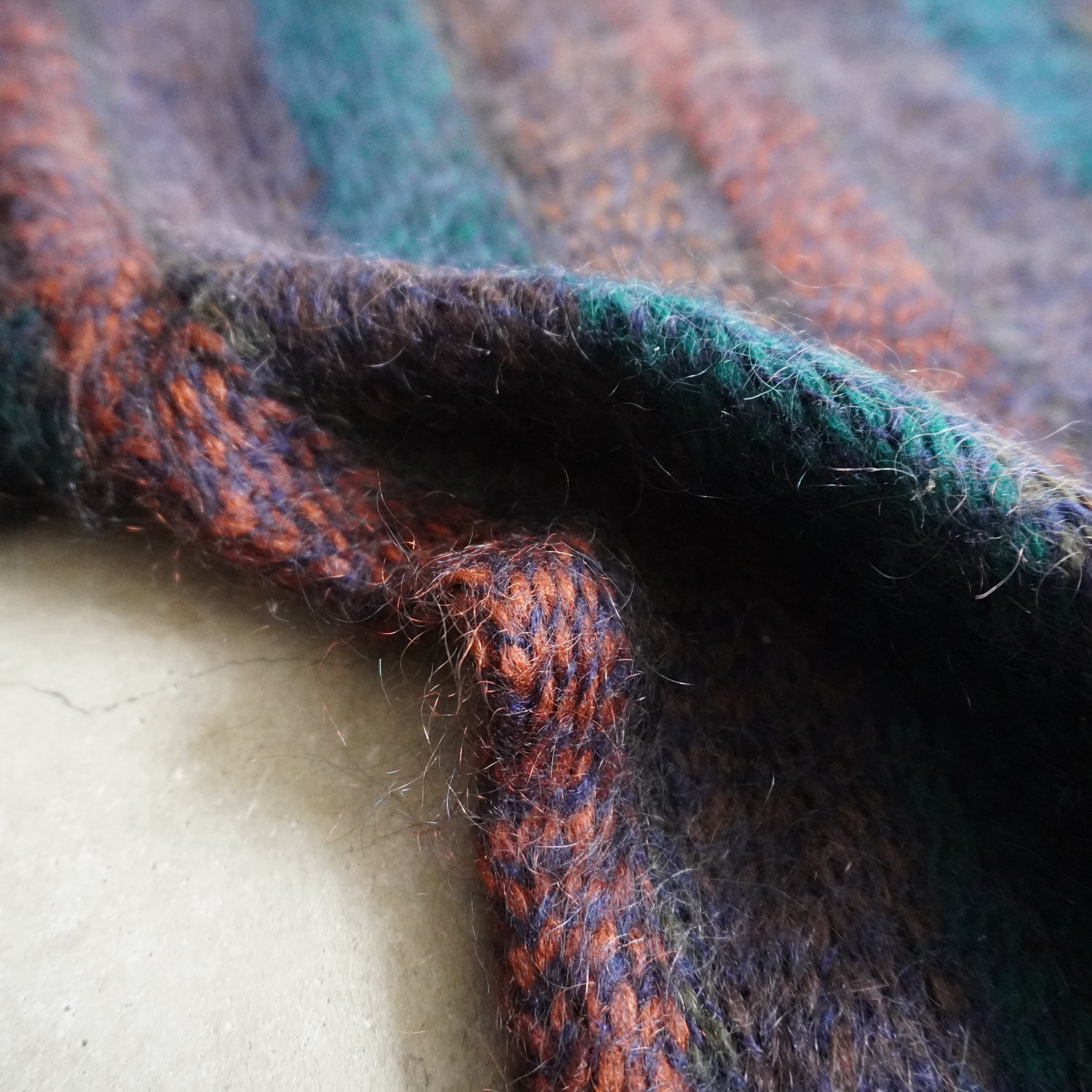 ブルーカラーをベースにオレンジや緑、茶色など何種類もの色が混ざったストライプ柄が可愛い1着◎