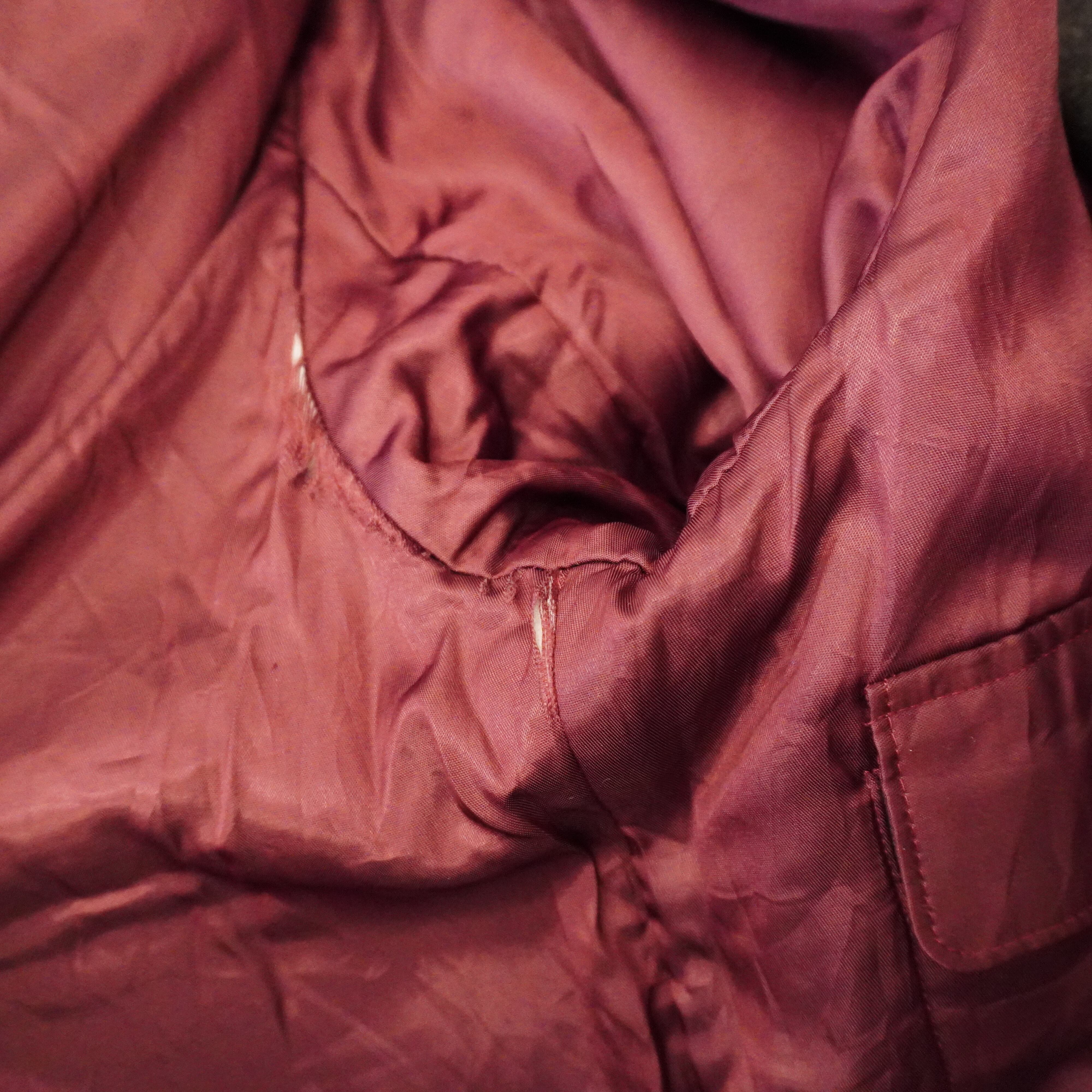 ボタンホールの裏側に染みが1箇所、裏地に破れやシミが数箇所ございます。写真にてご確認下さい。